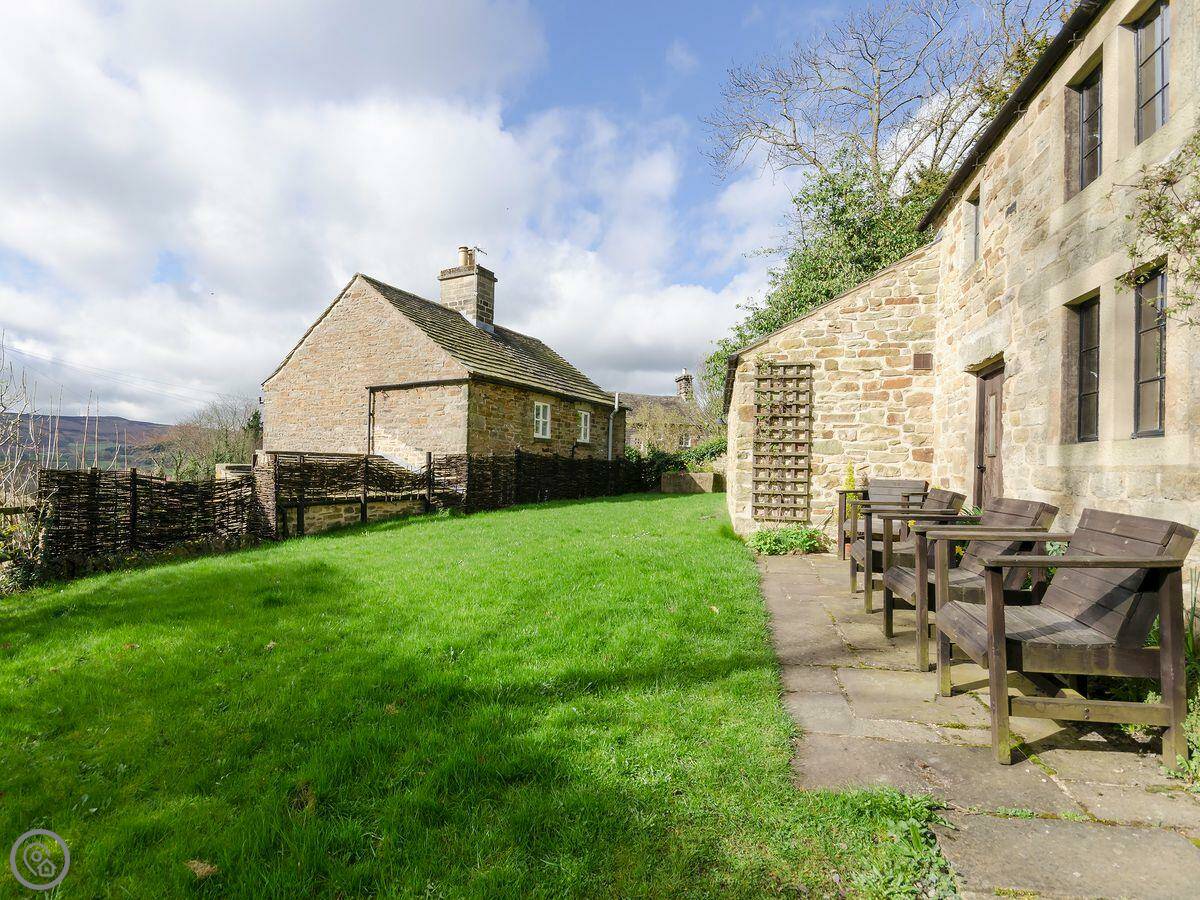 This is Highbury Cottage, in Hathersage. It's a detached stone cottage, one of two that sit together in the older part of the village. The views from the front look out over fields and hills.