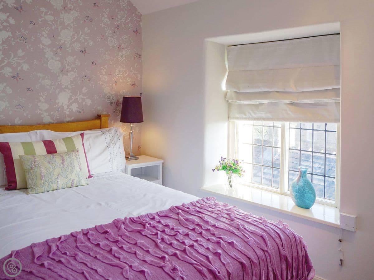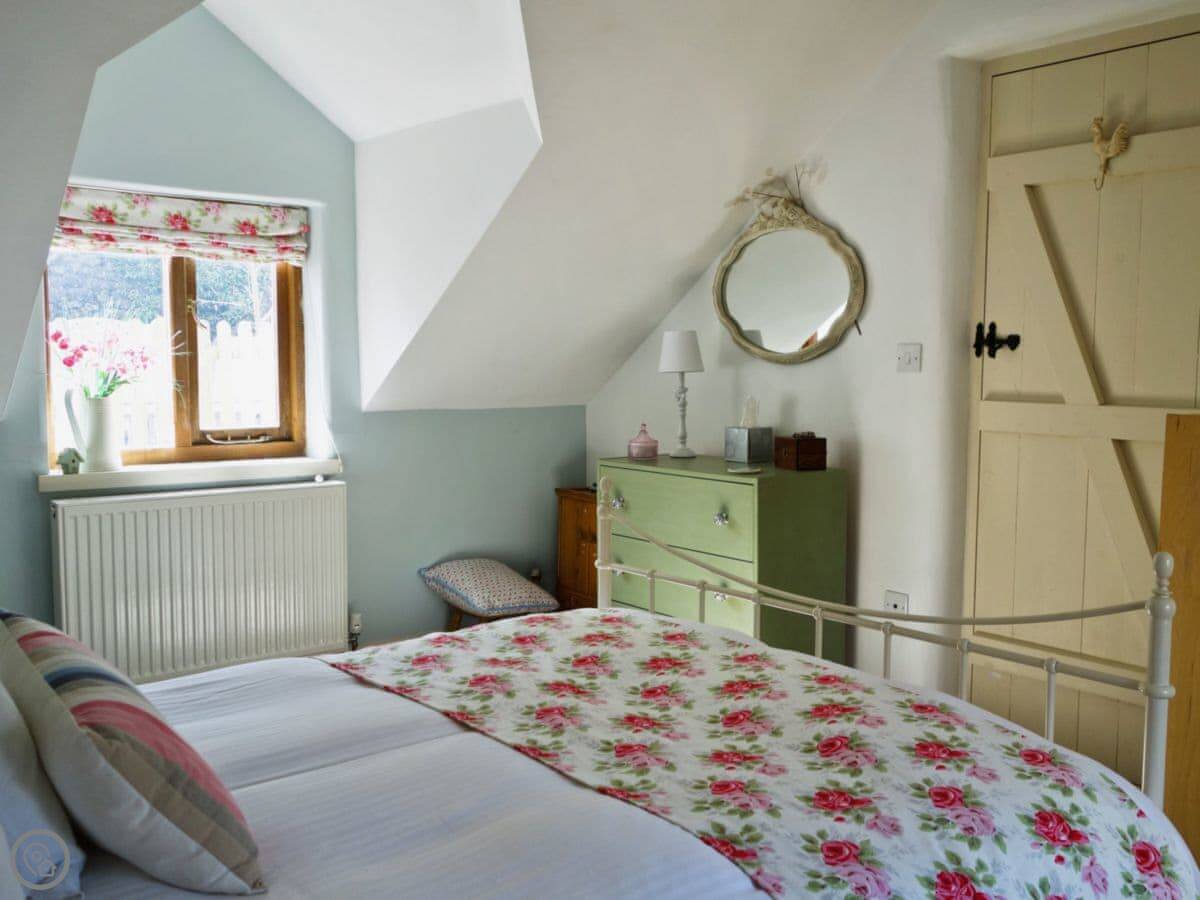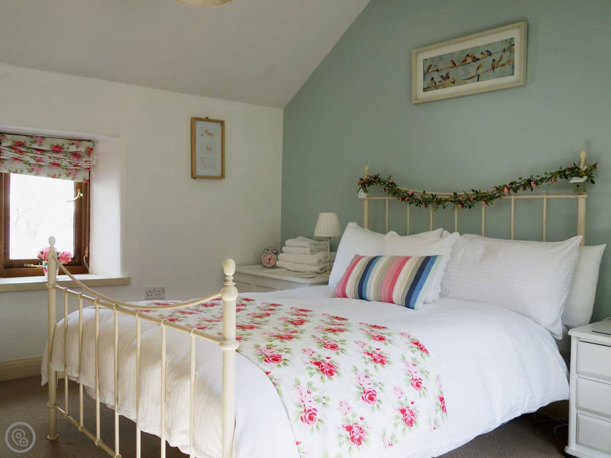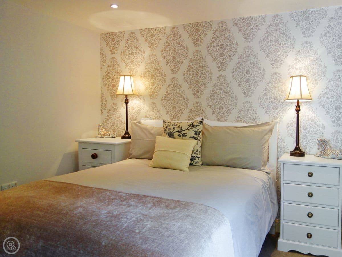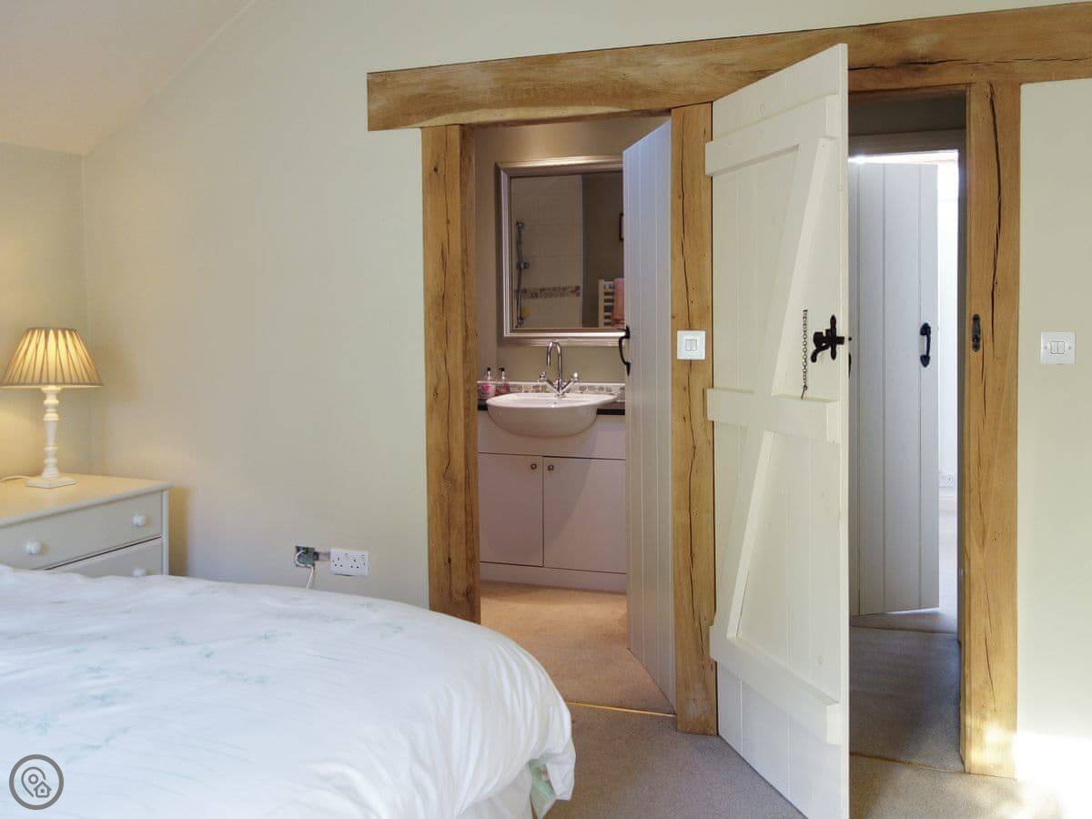 There are bedrooms on two floors, so it's flexible. One double room is downstairs. That one has a shower room next to it, which is handy for anyone who doesn't want to do stairs. The main bedroom upstairs has an ensuite and its own doors out to the garden.