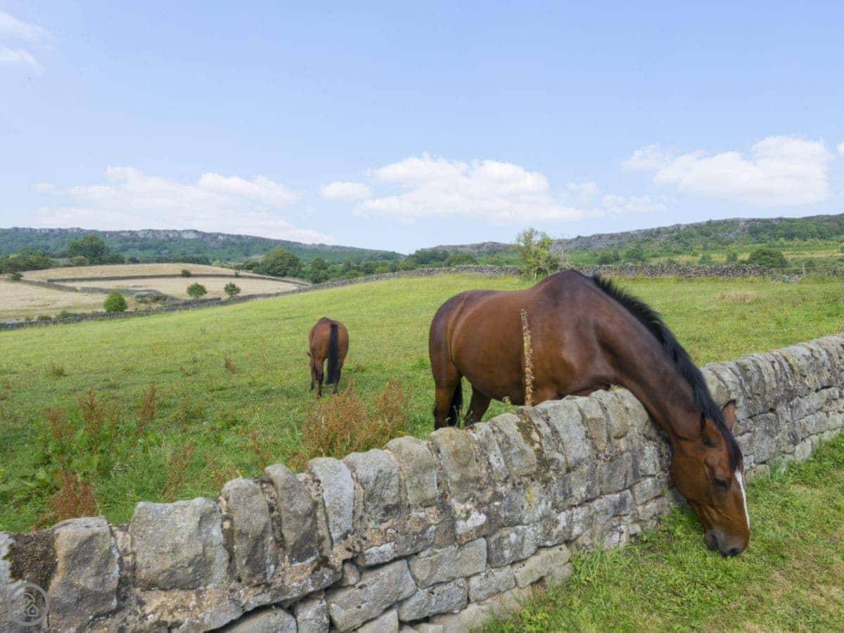 Surrounded by spectacular countryside and panoramic views in all directions, The Barn at Grislow Field can be found in an unrivalled location bordering the villages of Curbar and Baslow, within the heart of The Peak District National Park. Adjacent to a former farmhouse and close to the owner’s stables on a working farm, the property enjoys a rural outlook and is secluded yet centrally located for everything the Peak District has to offer.