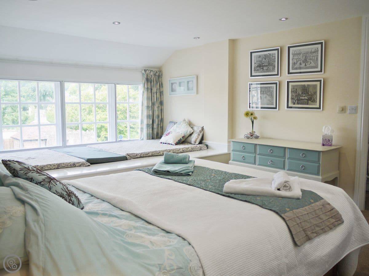 Abacus House boasts a very high specification, with a modern stylish kitchen and bathroom, but manages to retain its quirky stylish twists throughout. A large open plan living area leads through to a dining area, still housing the characterful open grate arts and crafts fireplace, and then to the kitchen, with its large feature windows throughout, letting the light flood through the whole of the ground floor. A staircase leads to an upper floor with its fun and interesting layout, including a bed and bathroom, along with a seating area complete with cushions to relax on and enjoy the view from the school windows.