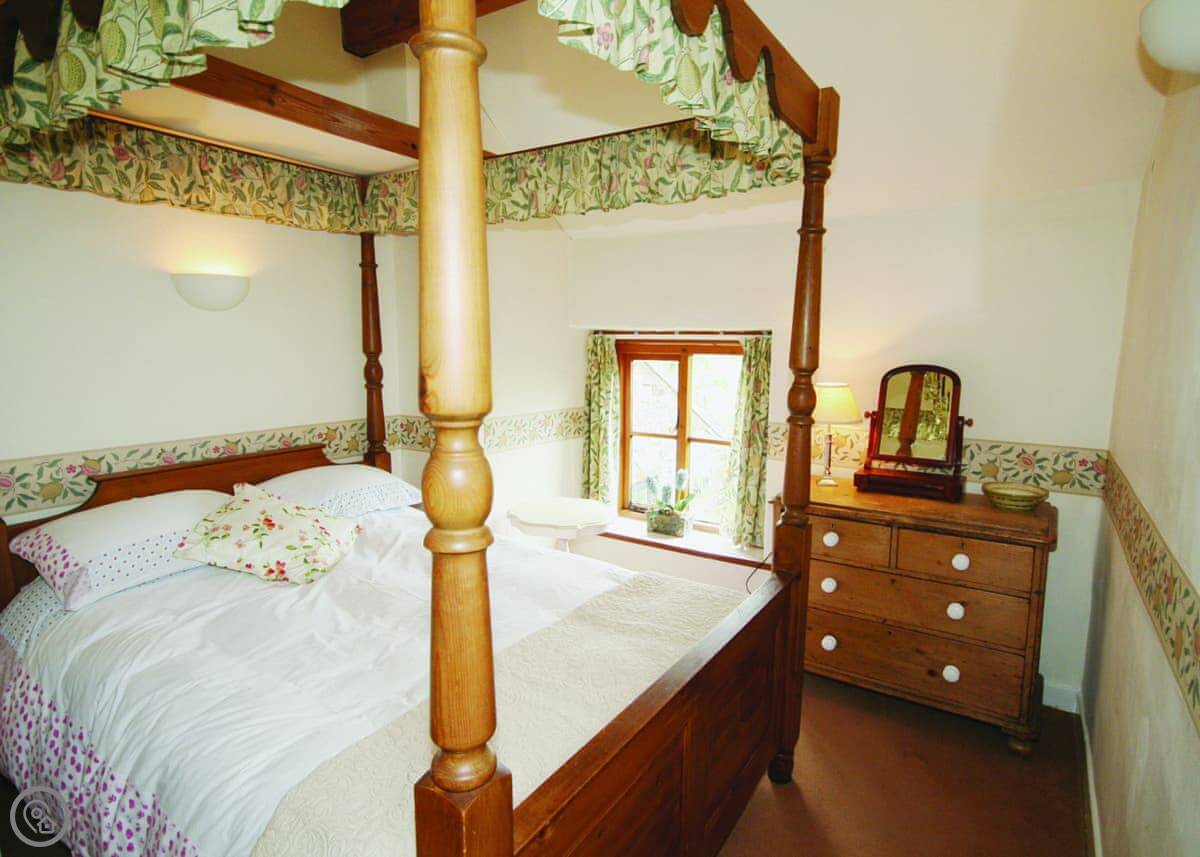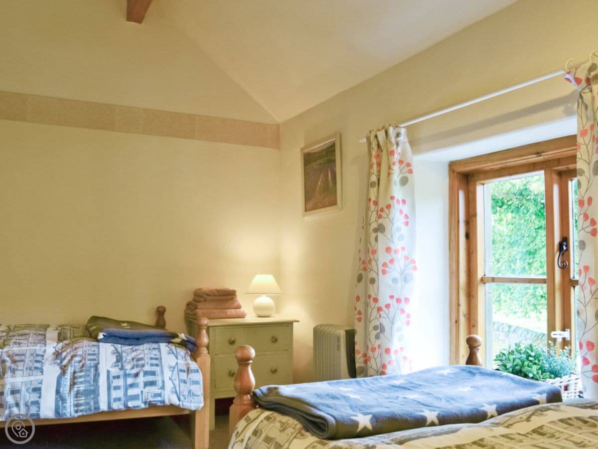 It sleeps four. Two bedrooms upstairs and one bathroom. It's got a 3 Star rating, so it's comfortable and clean but it's not a show home. It has beamed ceilings, so mind your head in the doorways. The stairs are cottage stairs, so they are a bit steep.