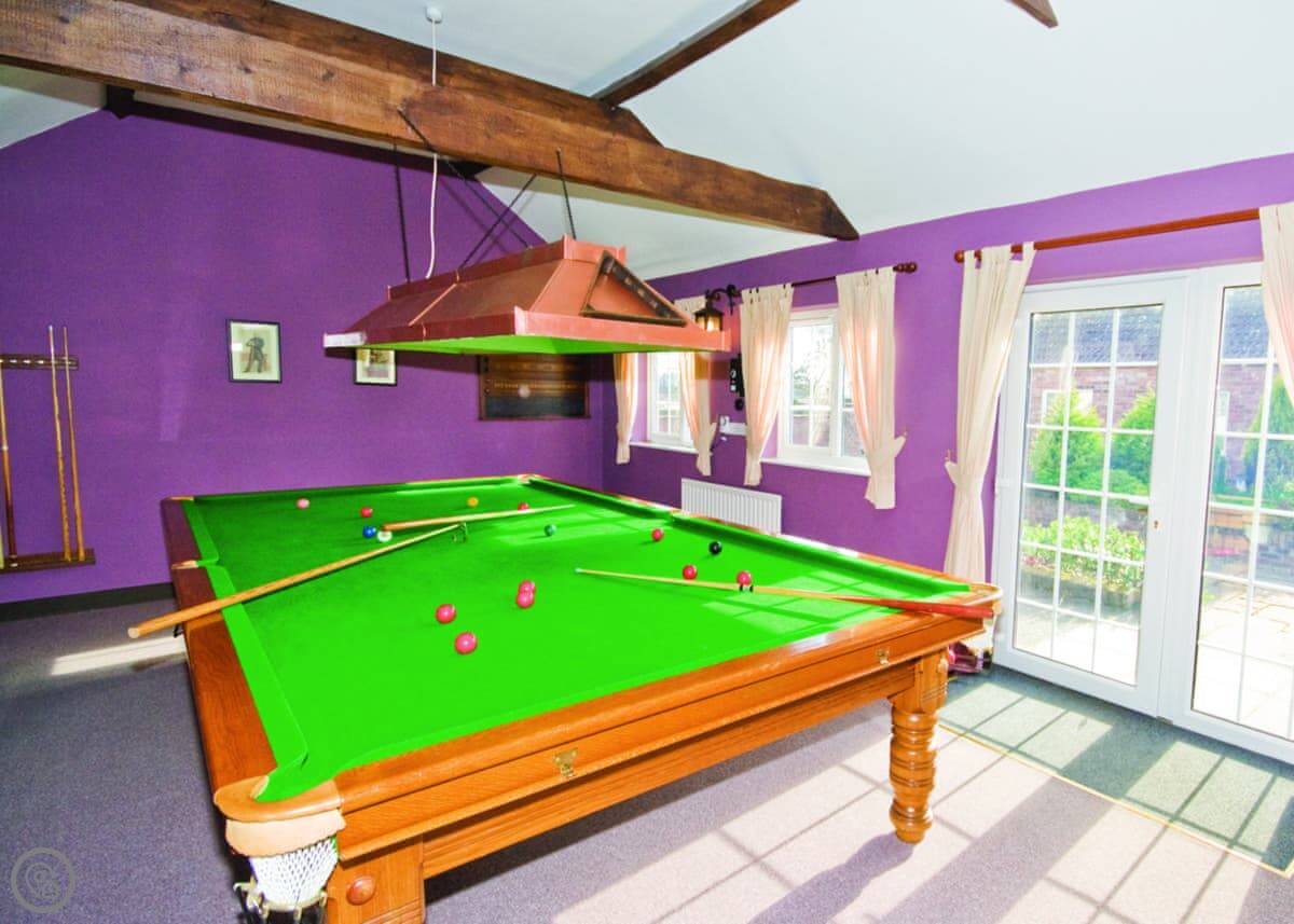 It's in the middle of farmland, so it's peaceful. The owners have about three acres of grounds with a lake, which you're free to walk around. There's a shared games room with a full-size snooker table in a separate building.