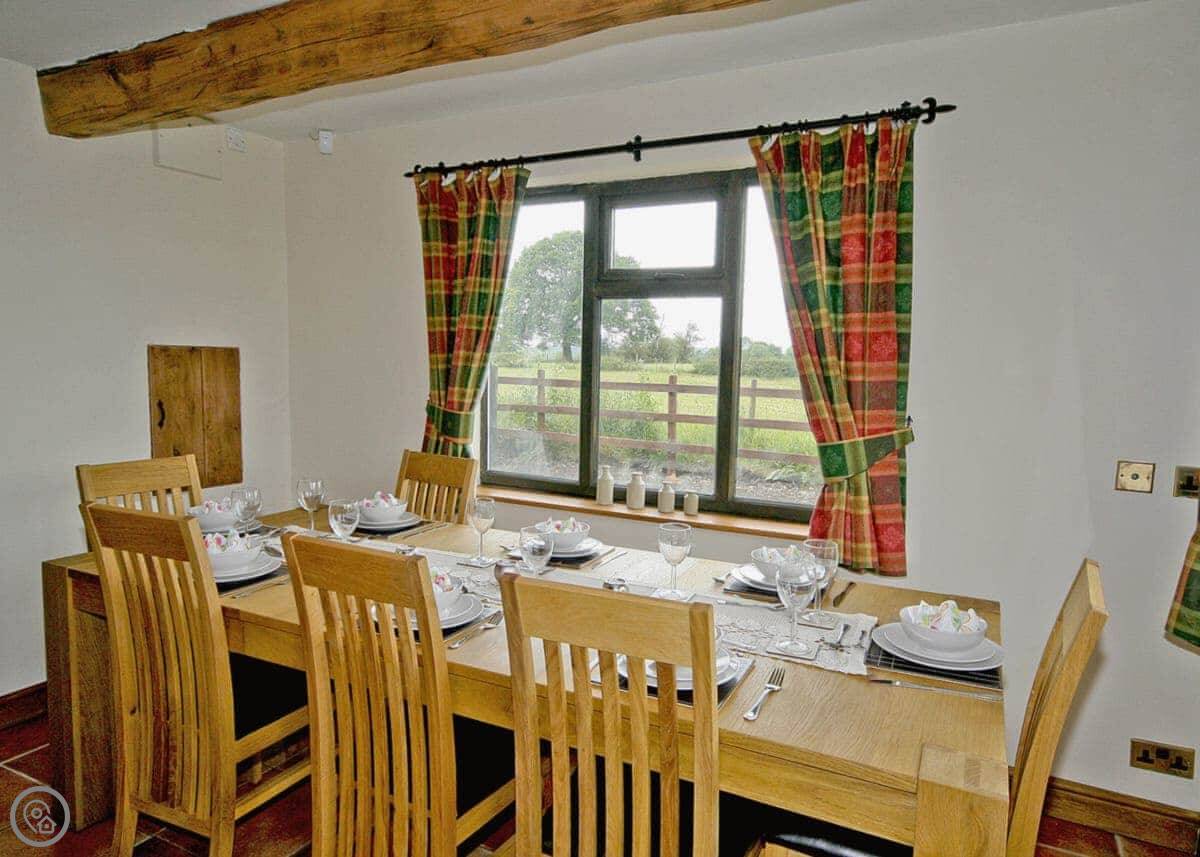 Tomfield Cottage is on Kingsley Moor, in Staffordshire. It's semi-detached, next to our farmhouse. You have your own private garden, though. The view from the back is fields and moorland.
