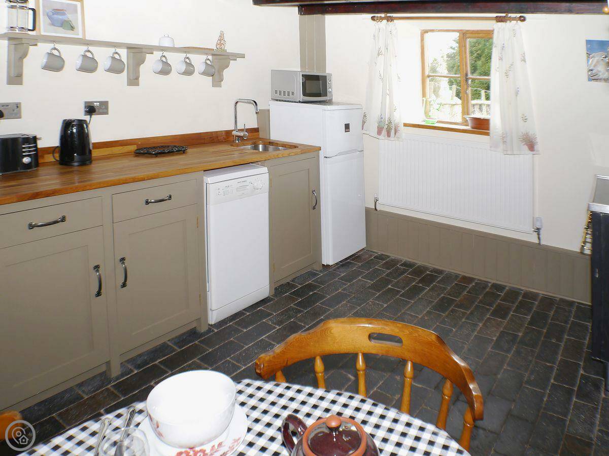 In the cottage there's a wood burner, a dishwasher, WiFi, and parking. Bedding and towels are included. We can provide a cot and highchair. You can bring two dogs.