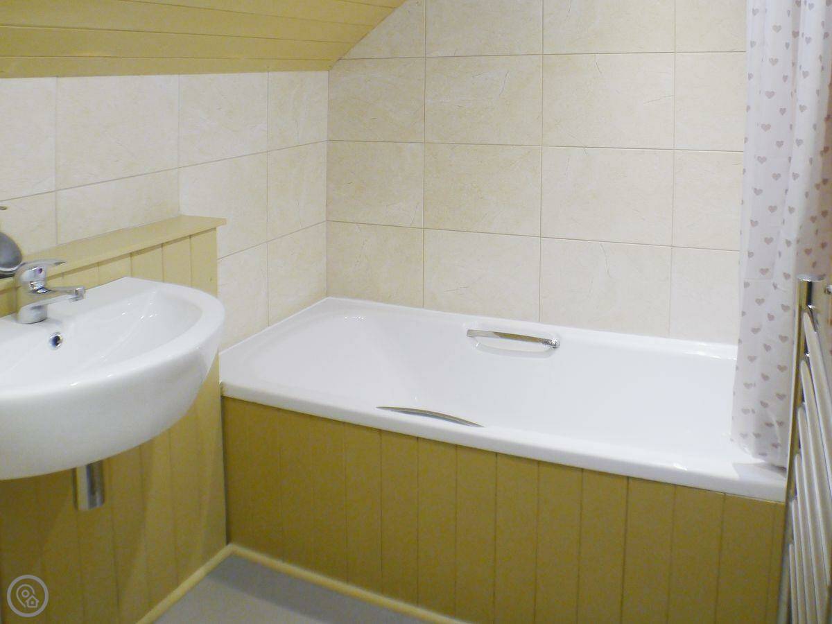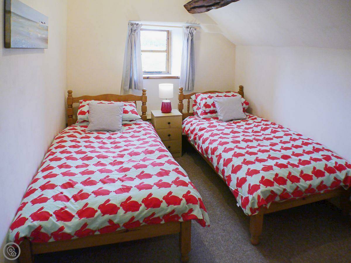 It sleeps four. Two bedrooms and a bathroom upstairs. It's got a 4 Star rating, so it's comfortable. We've kept the old features where we could. The ceilings are low in a couple of places, so mind your head.