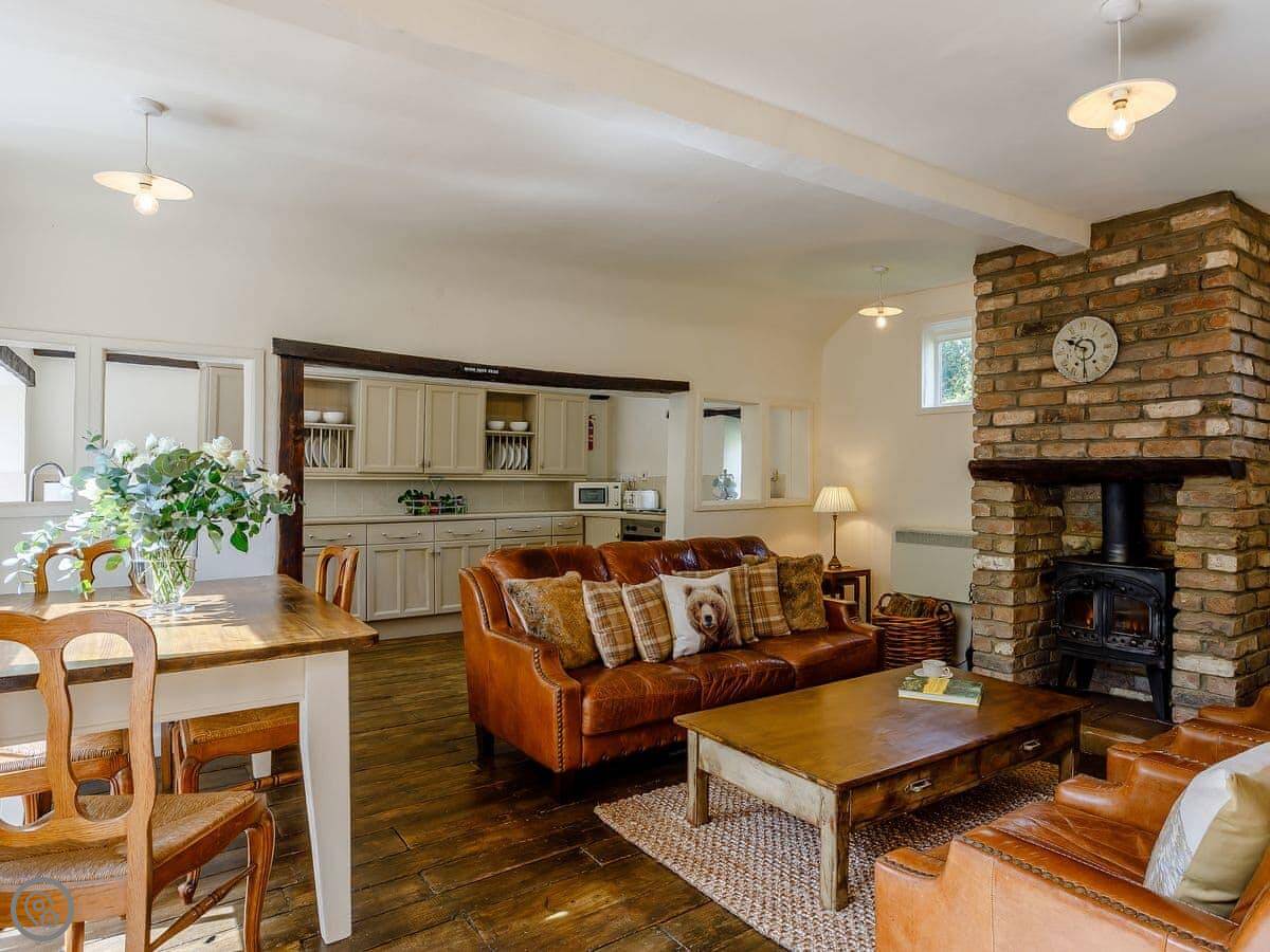 It's got what you'd expect: parking, WiFi, a washing machine, a woodburner. All bedding and towels are included. No pets, sorry.