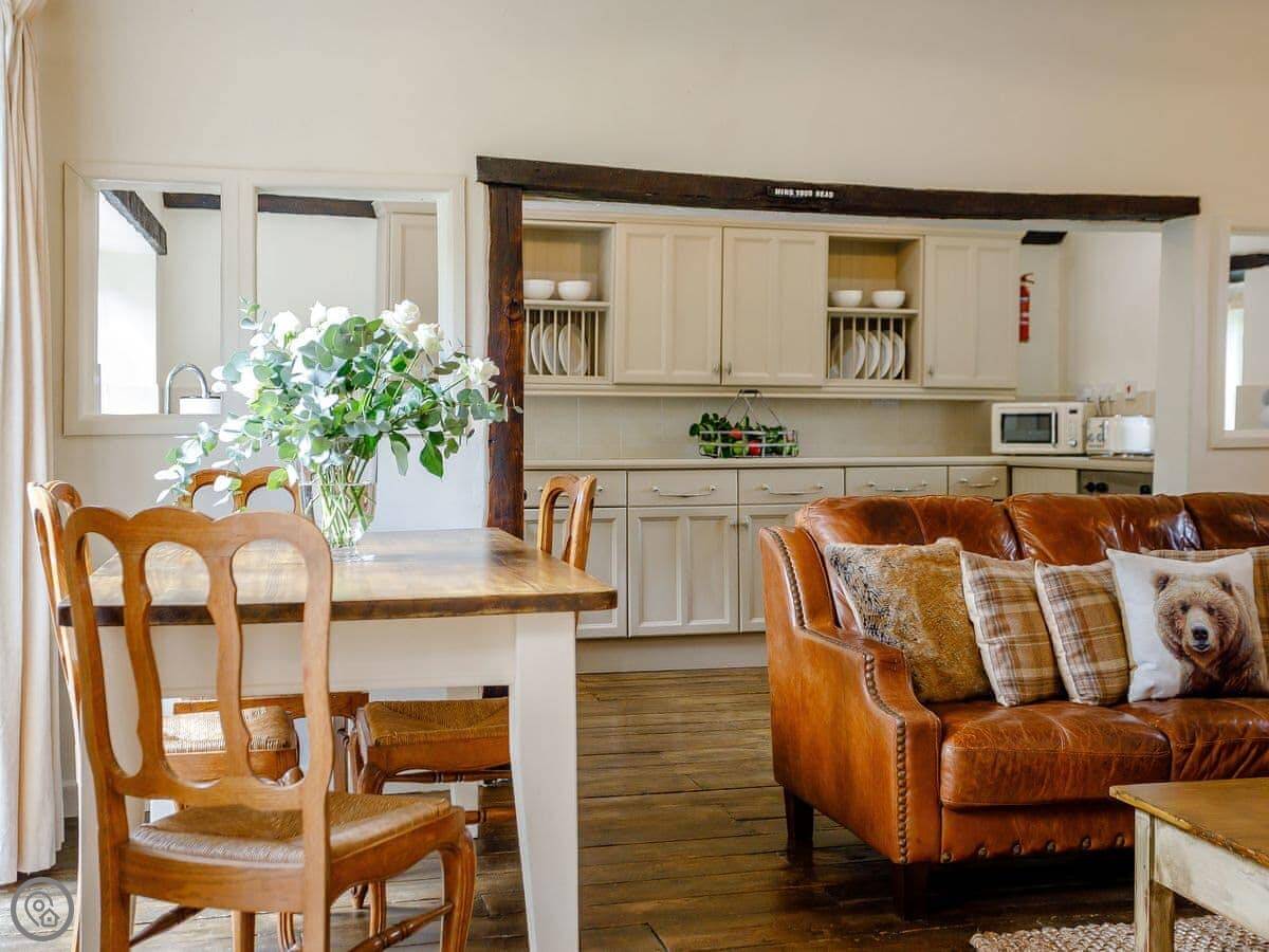 This is Orchard Barn in Oxenpill, near Glastonbury. It's a single-storey barn we converted, so no stairs at all. It's in our garden, but you can't see our house from it. It feels pretty private.