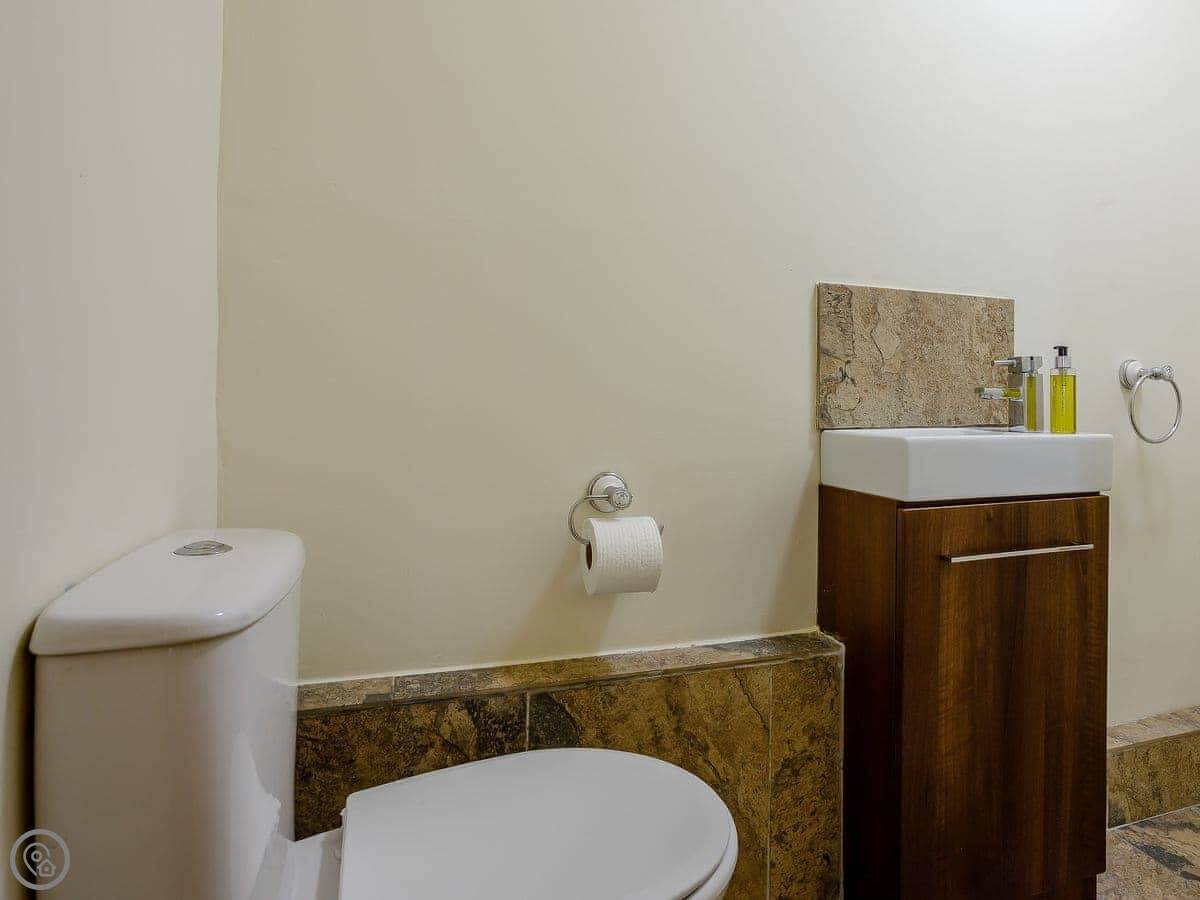 It sleeps four, in two bedrooms. Both have their own bathrooms. It's got a 5 Star rating, which just means it's been finished to a high standard. It’s comfortable.