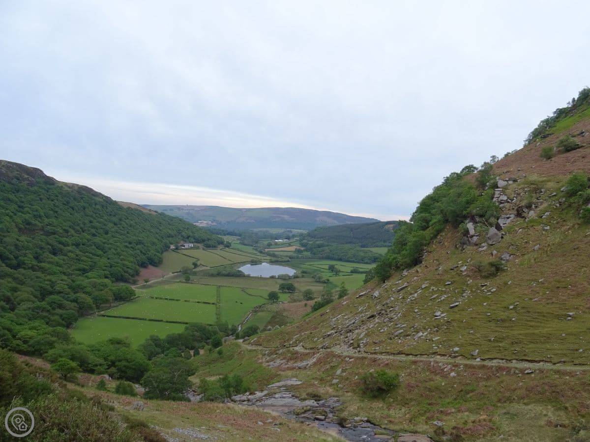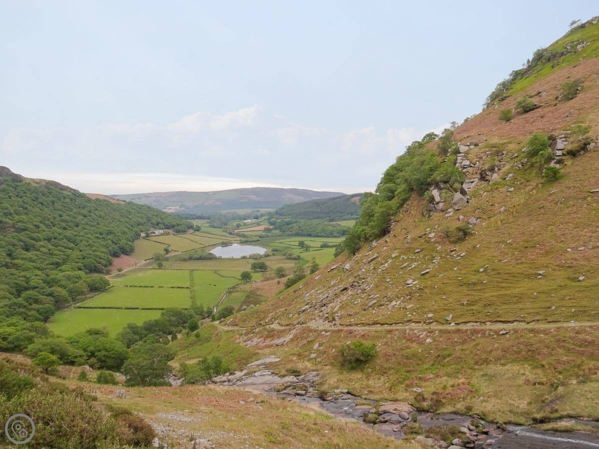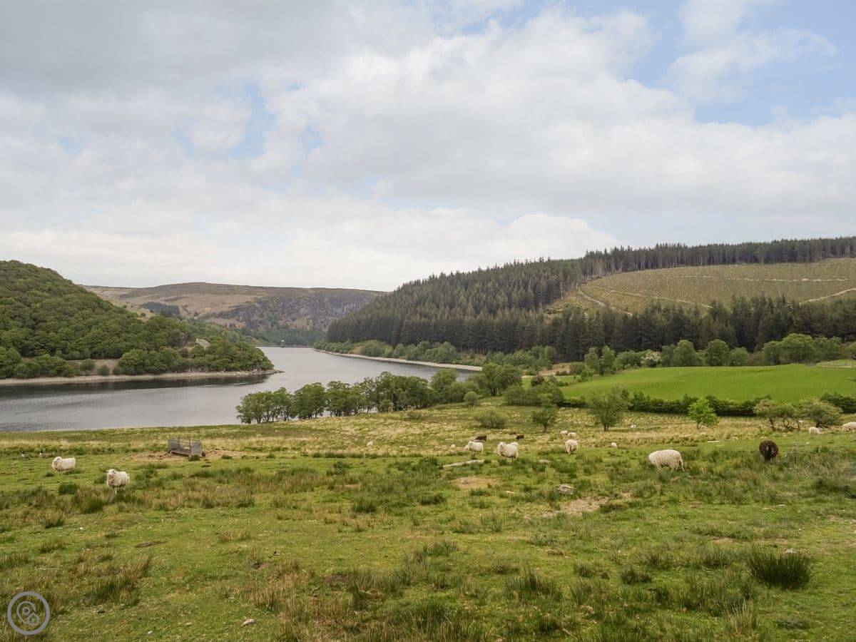 Glan Wye is a converted barn on our farm just outside Rhayader. It's detached, so it's just you and the view. That view is over the town and straight up the Elan Valley towards the reservoirs. It's very quiet.