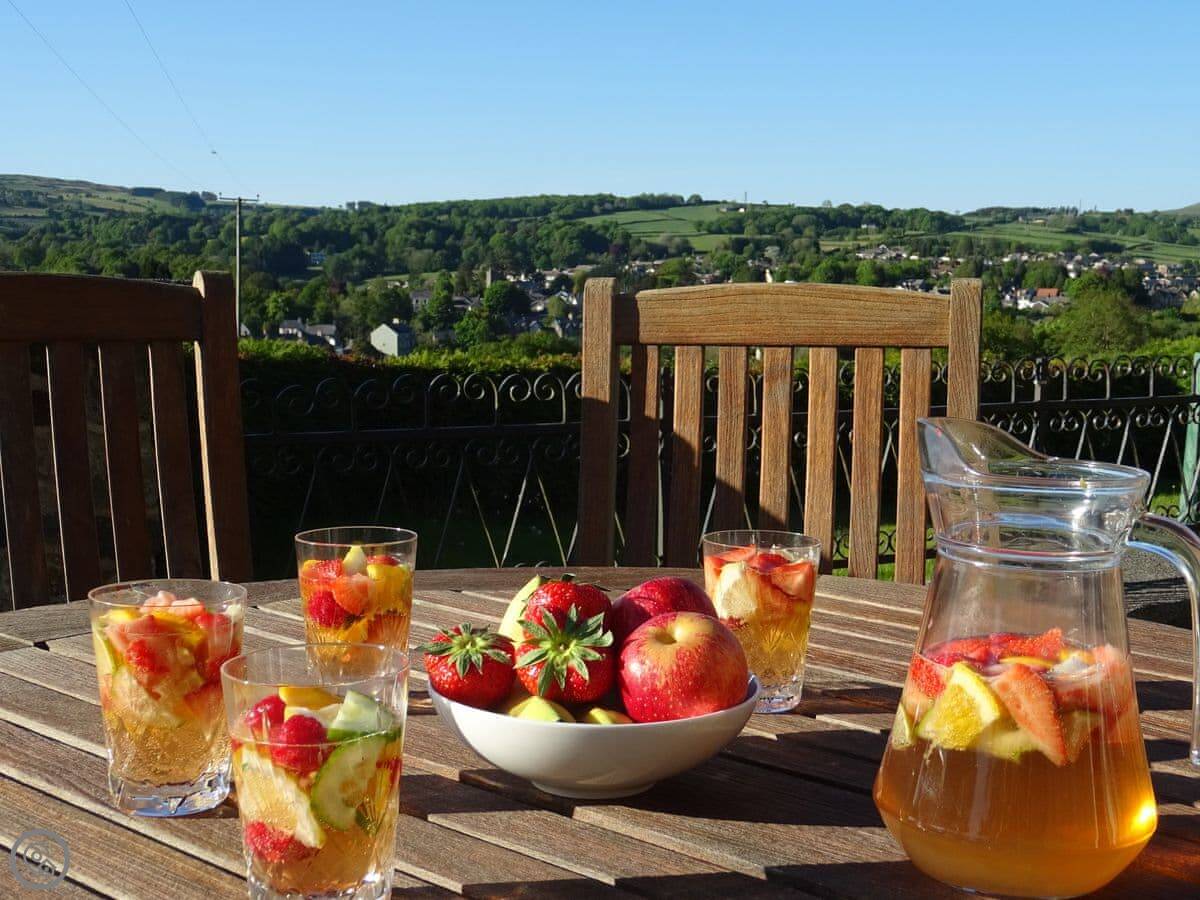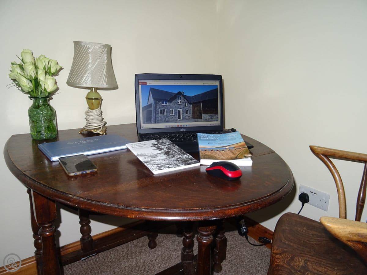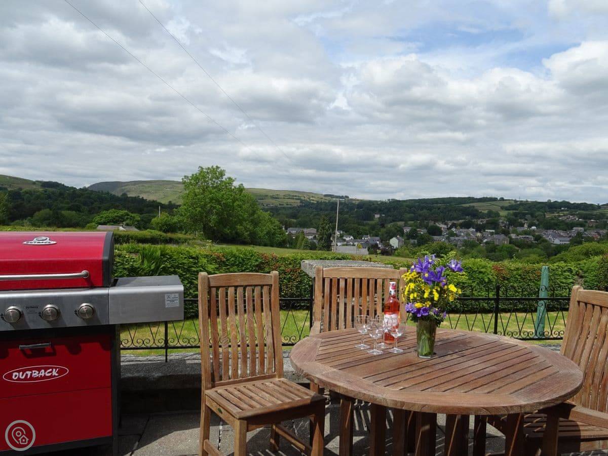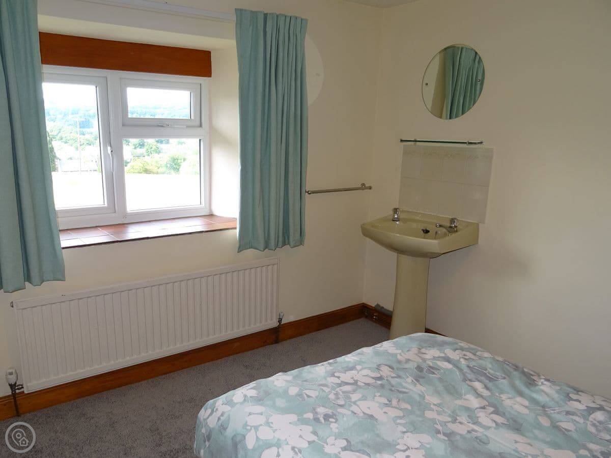 Glan Wye is a converted barn on our farm just outside Rhayader. It's detached, so it's just you and the view. That view is over the town and straight up the Elan Valley towards the reservoirs. It's very quiet.
