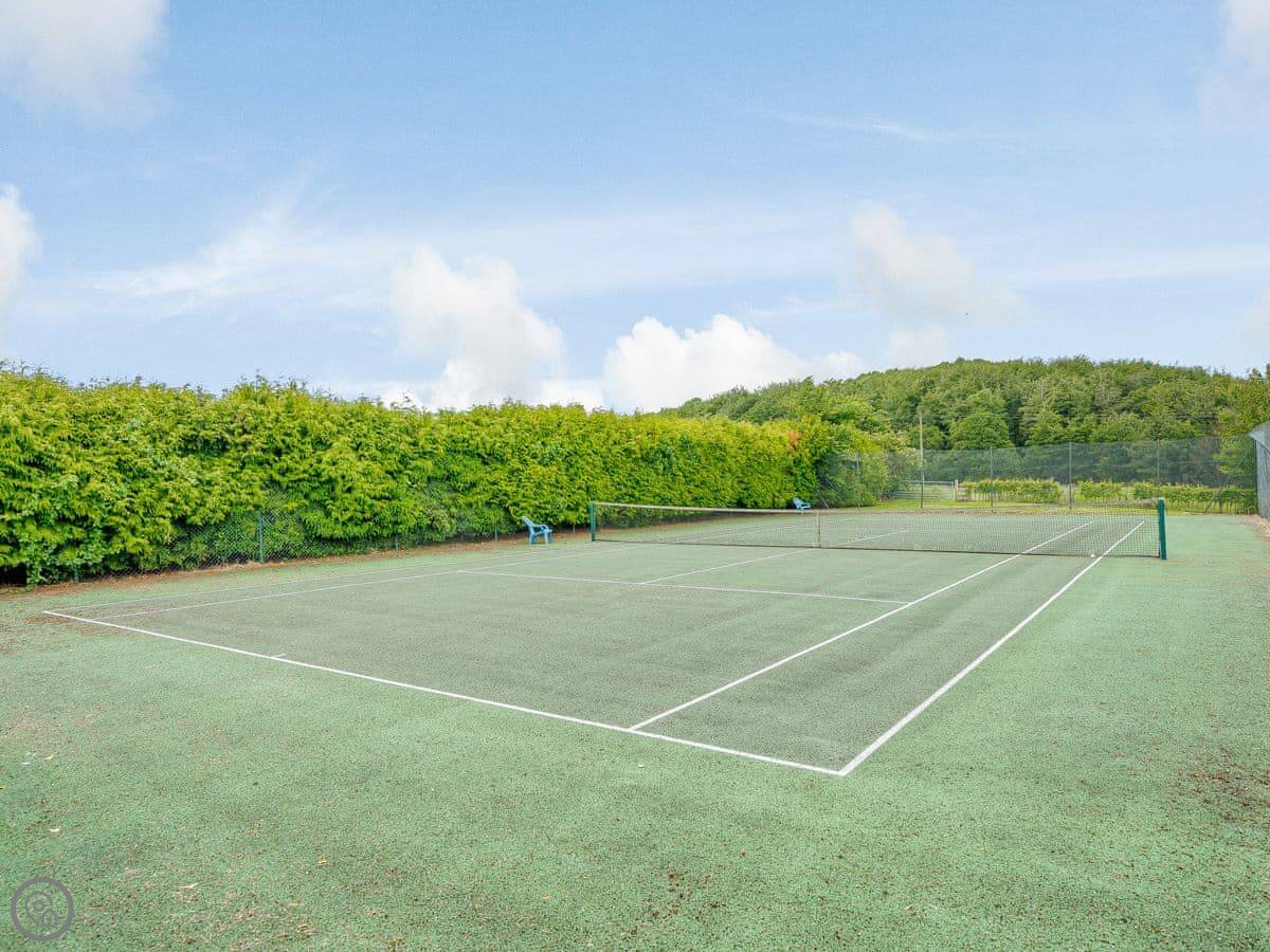 Outside, there's a private garden and patio with a barbecue. The garden was designed by Tom Stuart-Smith. There's also a shared tennis court and an outdoor swimming pool you can use. They're just across the yard.