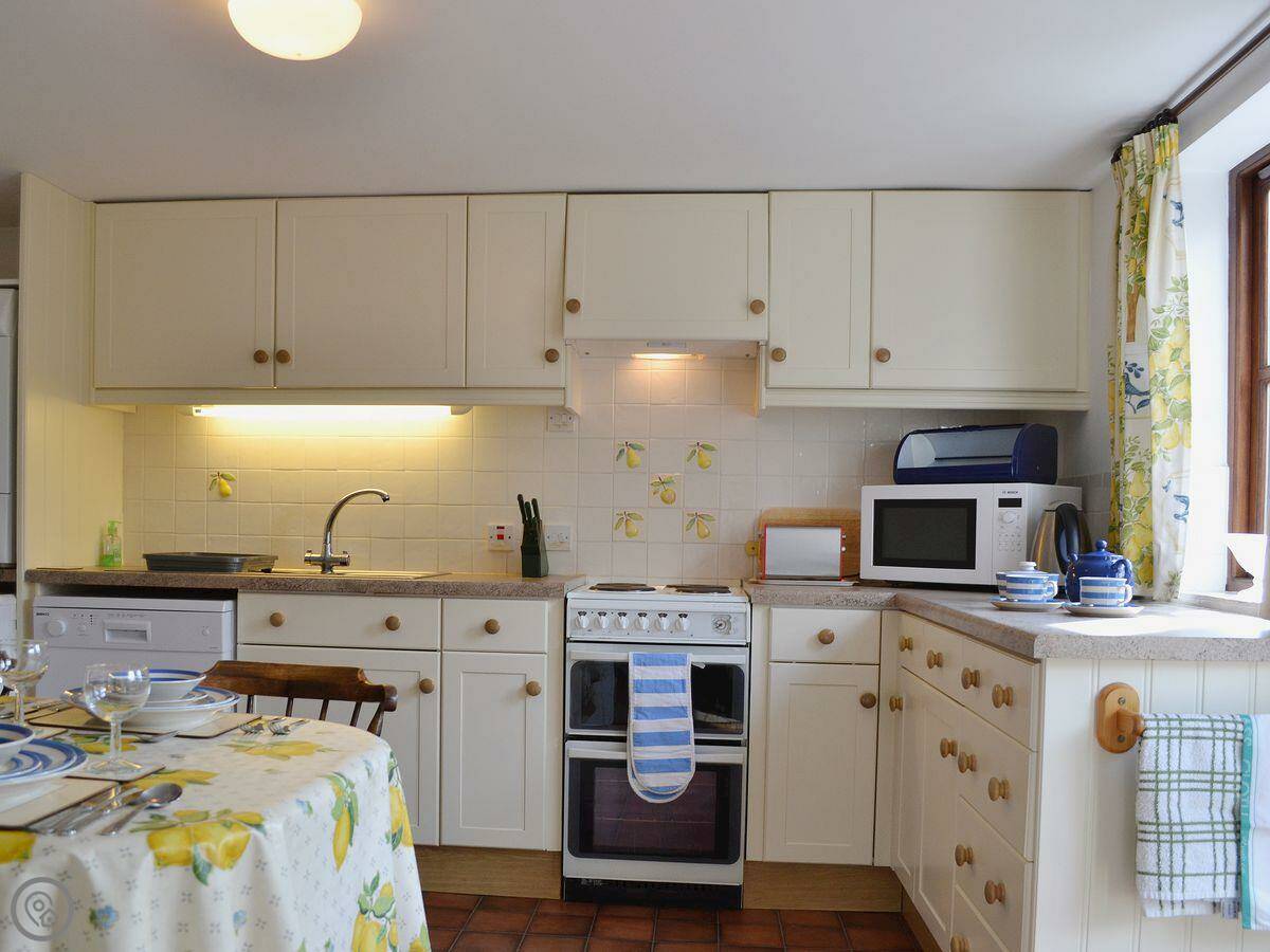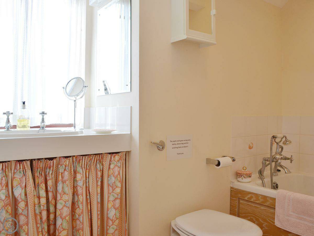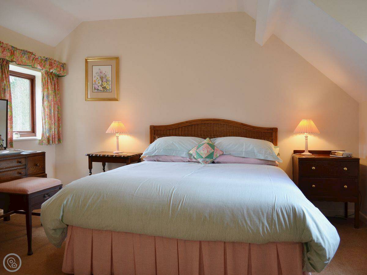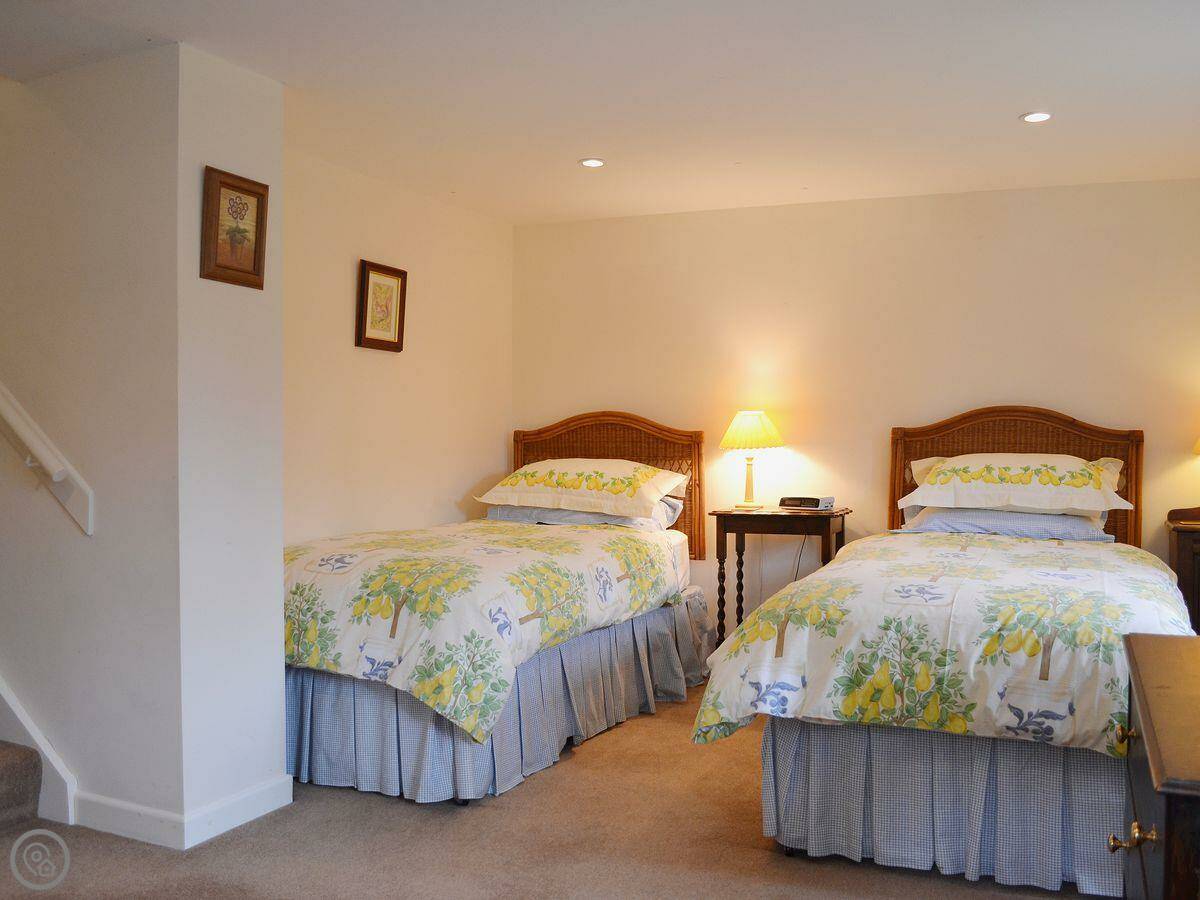 It sleeps four. Two bedrooms, both with their own bathrooms, which is handy. It's got a 4 Star rating. It used to be the stable and coach house for the farm, so the rooms are a good size. There are a couple of steps between the kitchen and the living room, just so you know.
