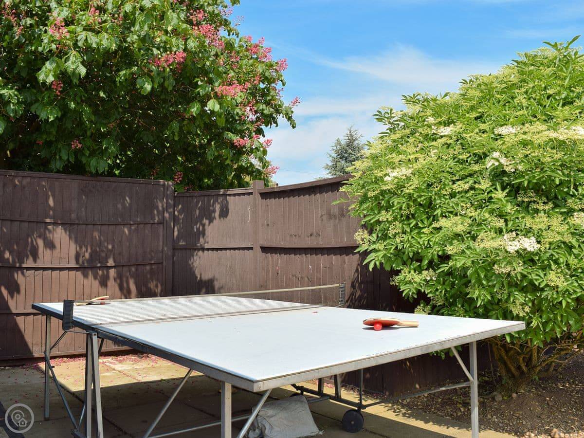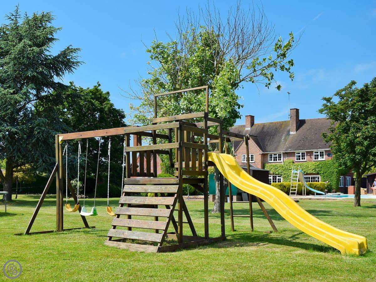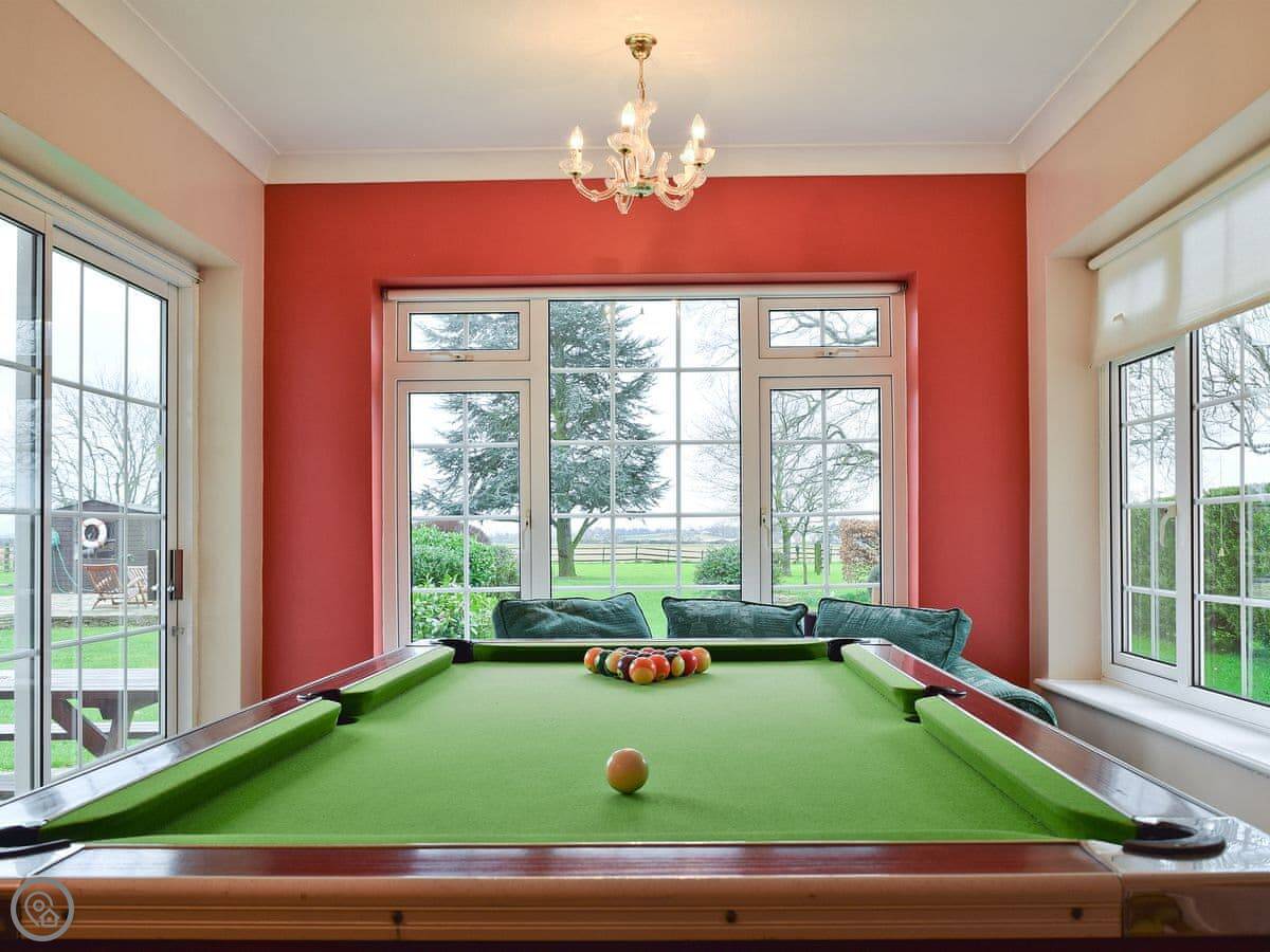 The main thing is the space outside. There's about five acres of grounds, but your bit is the big terrace and garden. It faces south so it gets the sun. There's a heated swimming pool you can use, and a hard tennis court. The kids' play area has a trampoline, swings and a slide. There's also a games room inside with a full-size pool table.