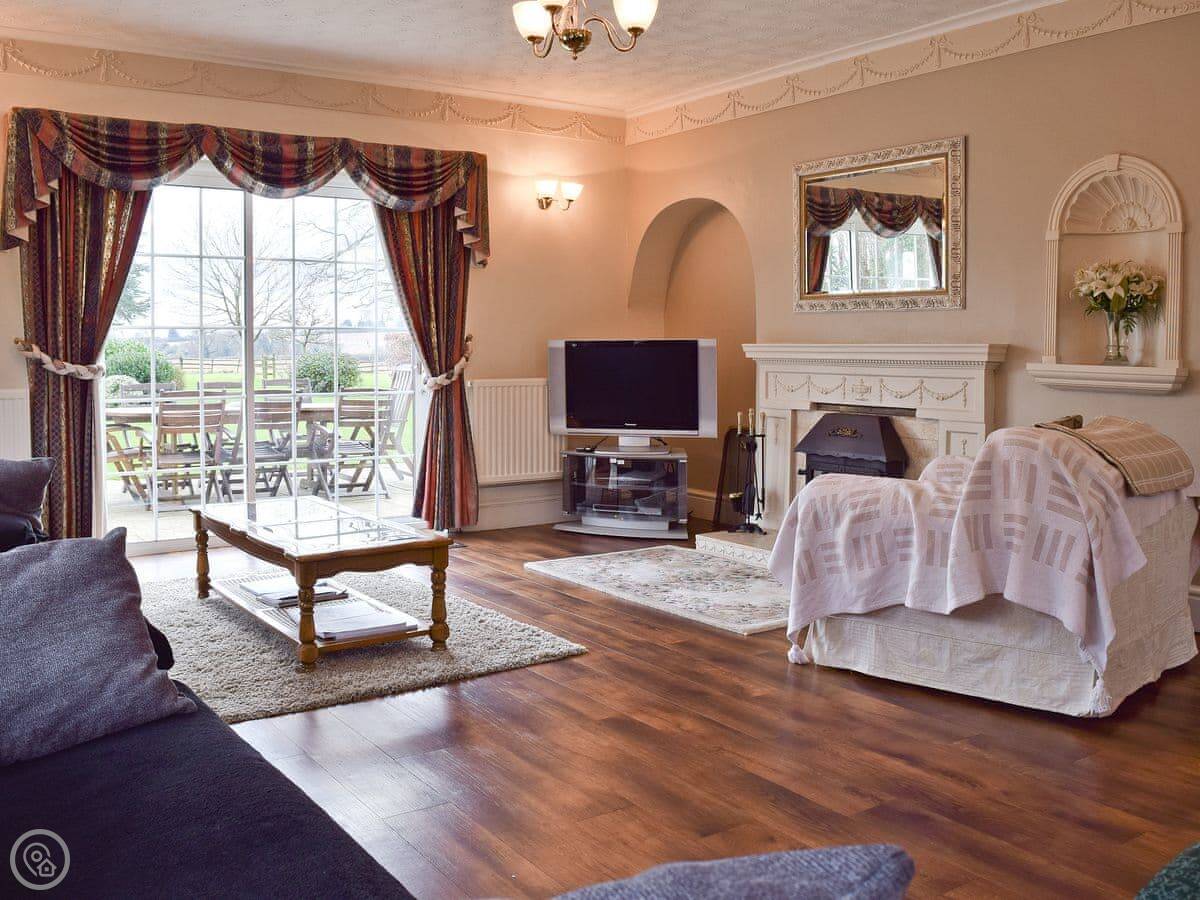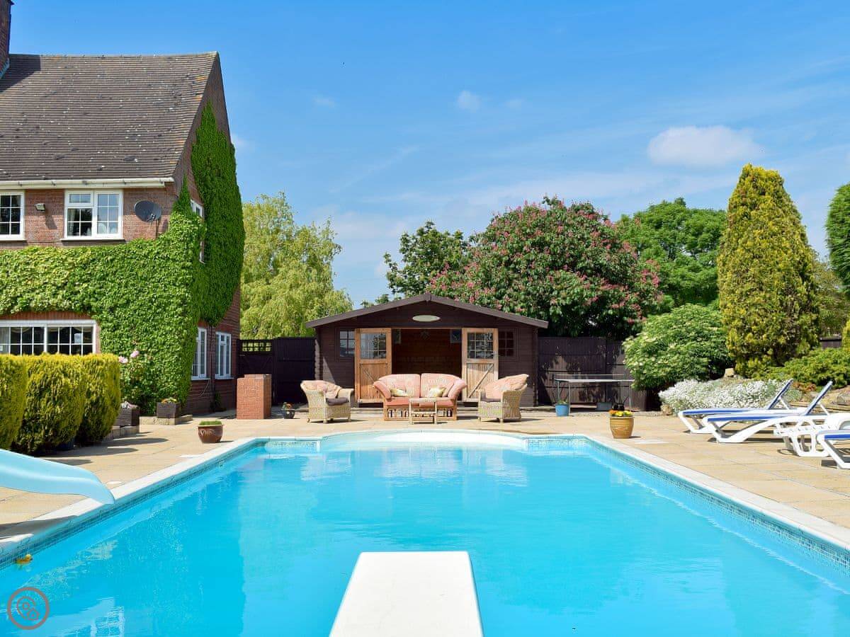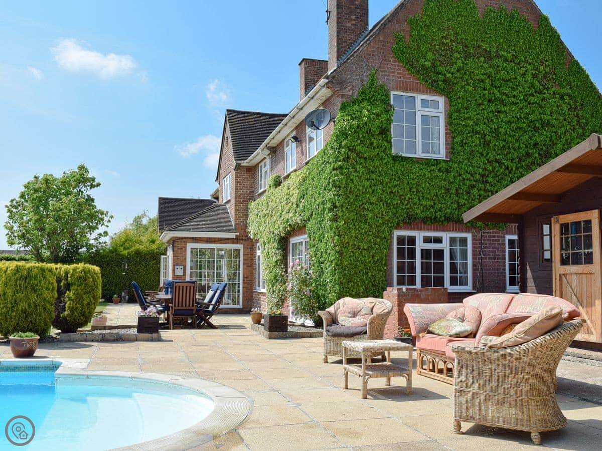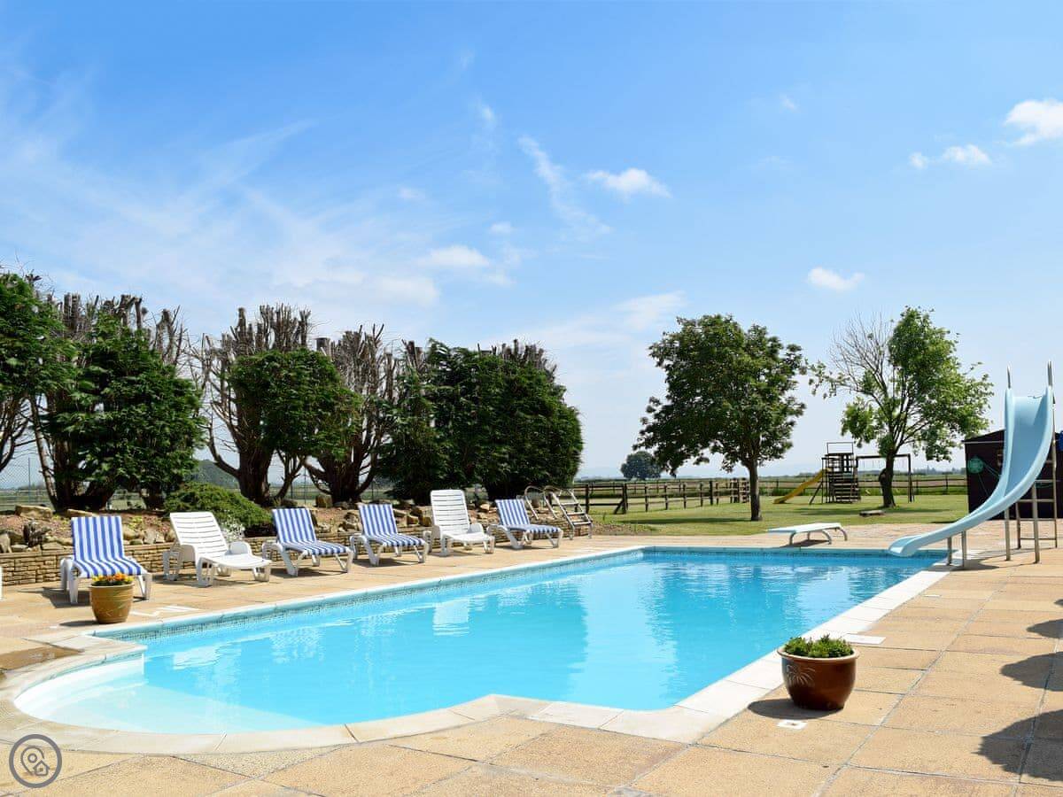 The main thing is the space outside. There's about five acres of grounds, but your bit is the big terrace and garden. It faces south so it gets the sun. There's a heated swimming pool you can use, and a hard tennis court. The kids' play area has a trampoline, swings and a slide. There's also a games room inside with a full-size pool table.