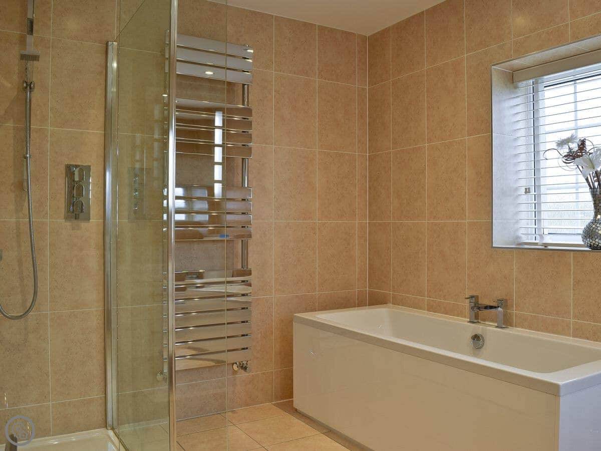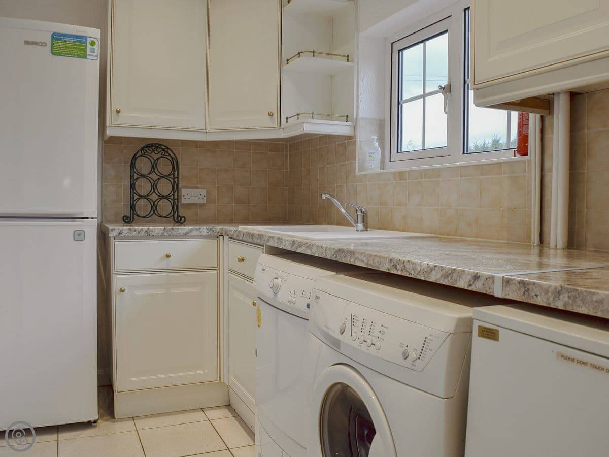 Inside, there's underfloor heating downstairs. The wood burner works well. We provide bedding, and there's a washing machine and dishwasher. You can bring up to three dogs. Parking is right outside.