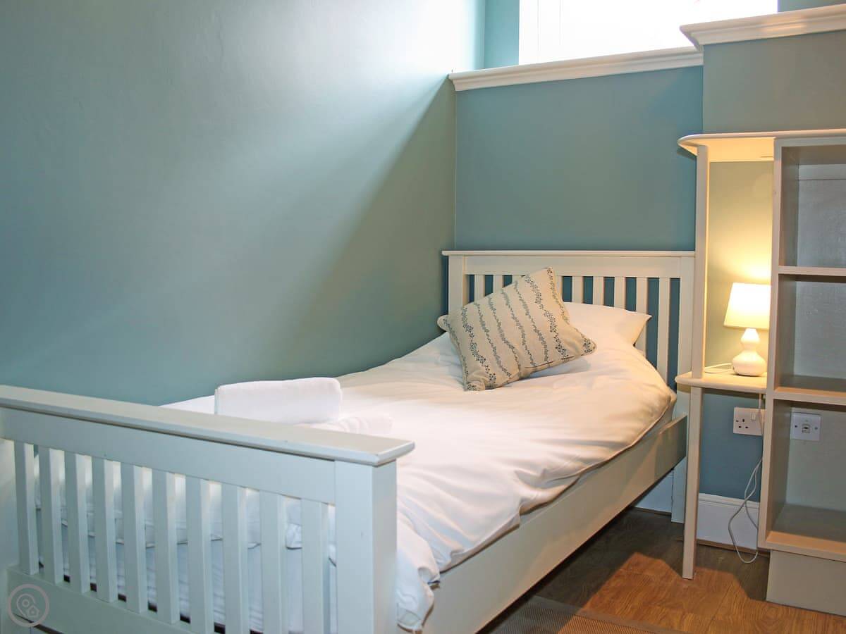 It sleeps five. There are three bedrooms: one has a very big bed, then there's a twin room, and a single room. There's one proper shower room, and a separate toilet.