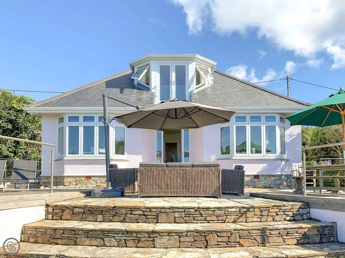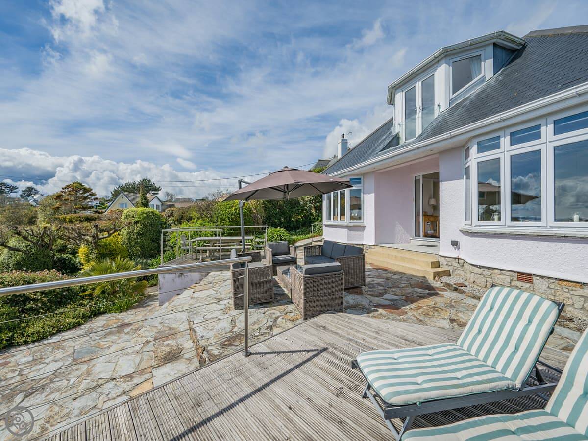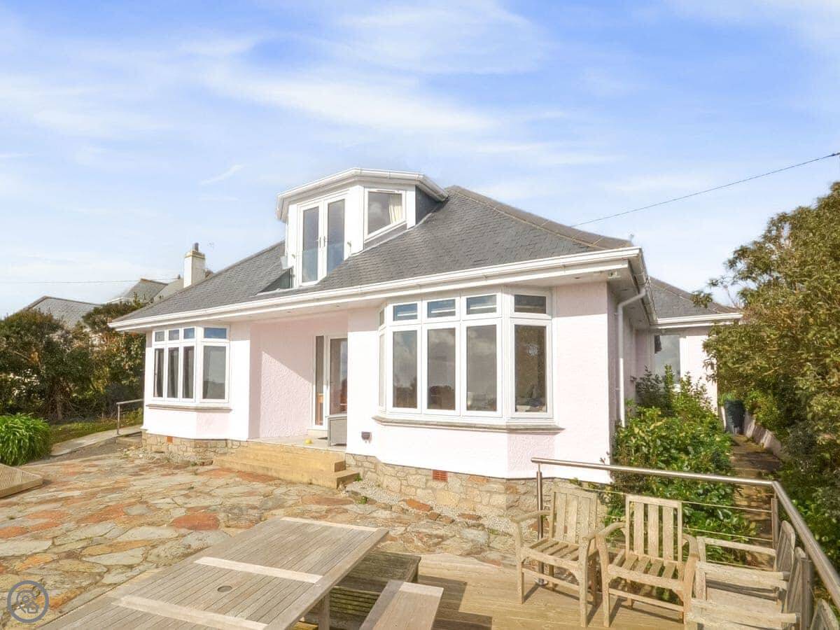 This place is called Highlands. It's up the hill from St Mawes itself, so you get the view. It's a chalet bungalow we've done up. Sleeps seven in four bedrooms. All four have their own bathroom or shower room, which is handy.