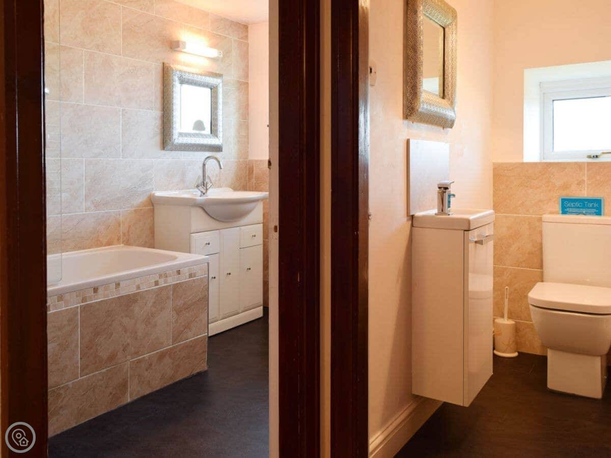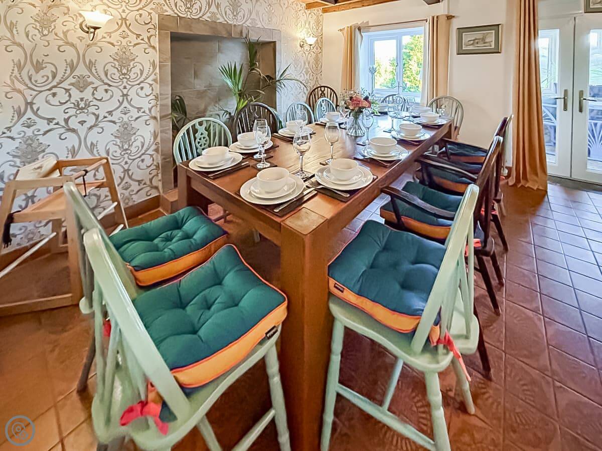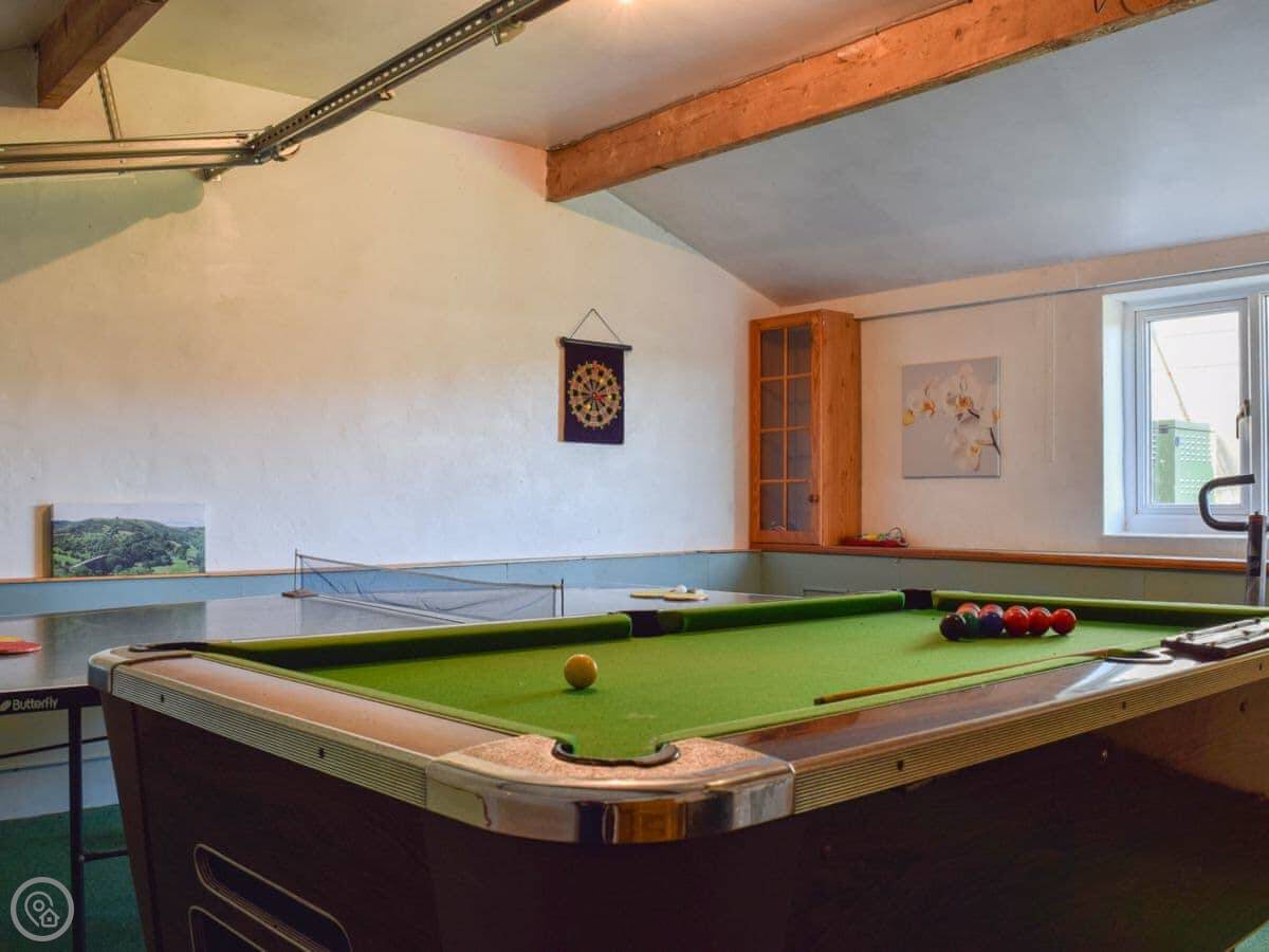 Inside, there's a wood burner in the living room for cooler evenings. There's a games room as well. The kitchen has a dishwasher and there's a washing machine. Bedding is included, and we can provide a cot and highchair.
