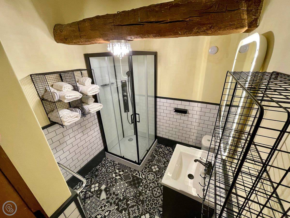 The facilities here are good. It has parking, WiFi, a dishwasher, and an enclosed garden. There's a cot and highchair if you need them. Bedding and towels are included. You can bring up to two dogs. They've also put in an electric vehicle charger.
