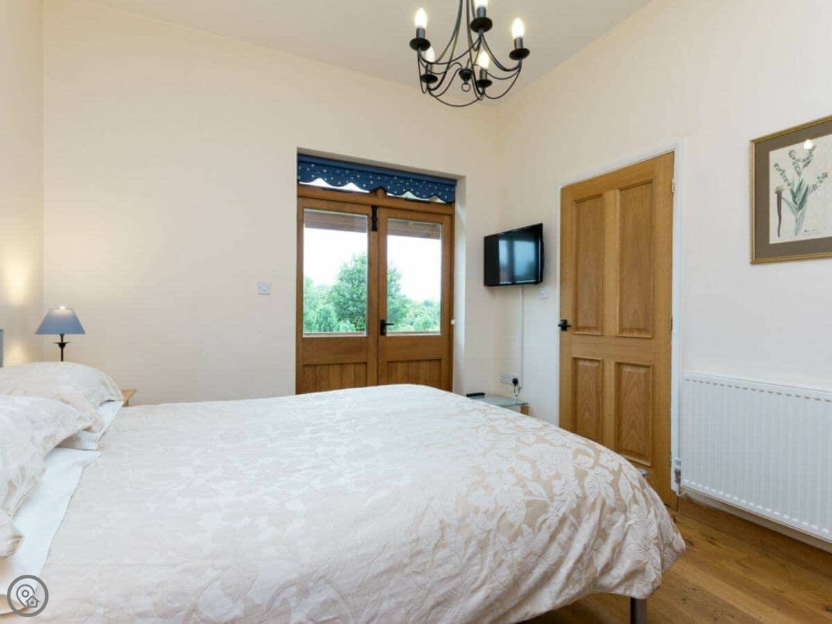 You've got your own garden and patio with a barbecue. It looks out over the fields. Being a farm, you'll see sheep and cattle around. There's a washing machine, dishwasher, WiFi, and TV. Parking is right outside.