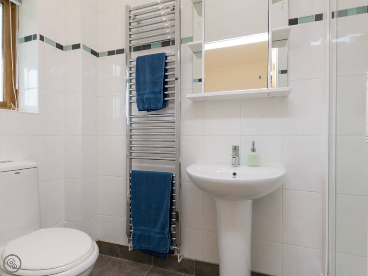 It sleeps four, with two bedrooms and two bathrooms. Each bedroom has its own bathroom, which is handy. The inside is nicely finished, but it’s not huge. The main farmhouse, Parkers, is older but this lodge was built in 2006.