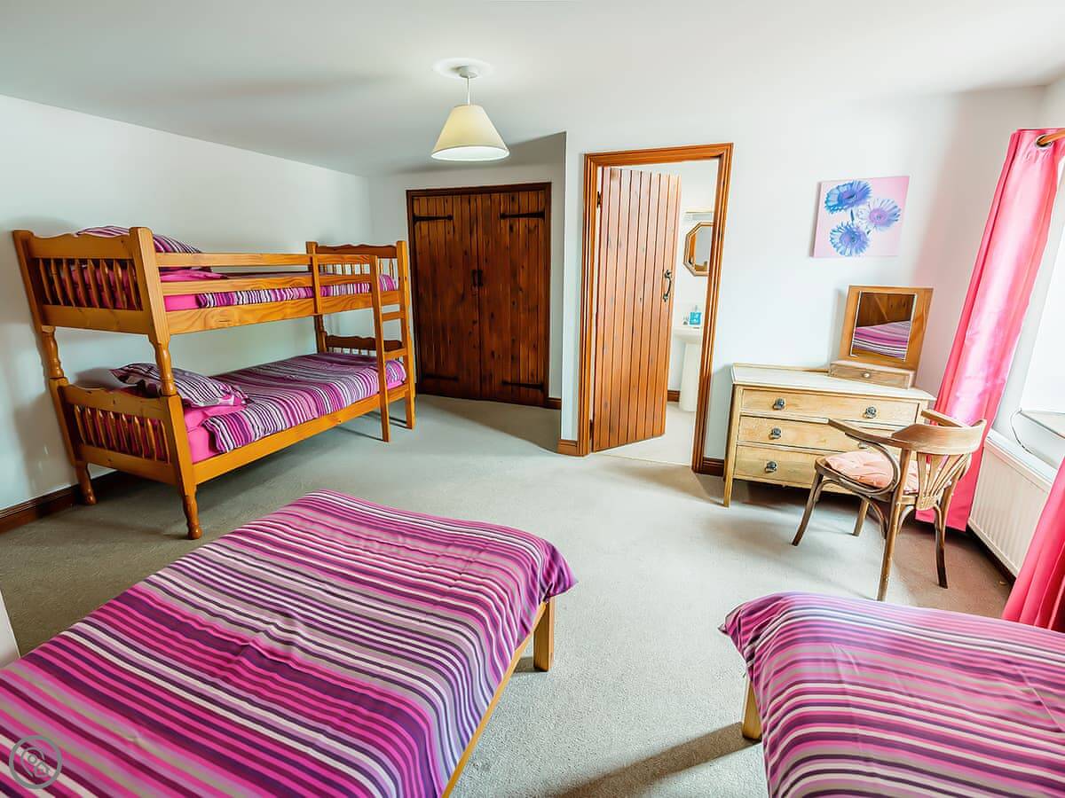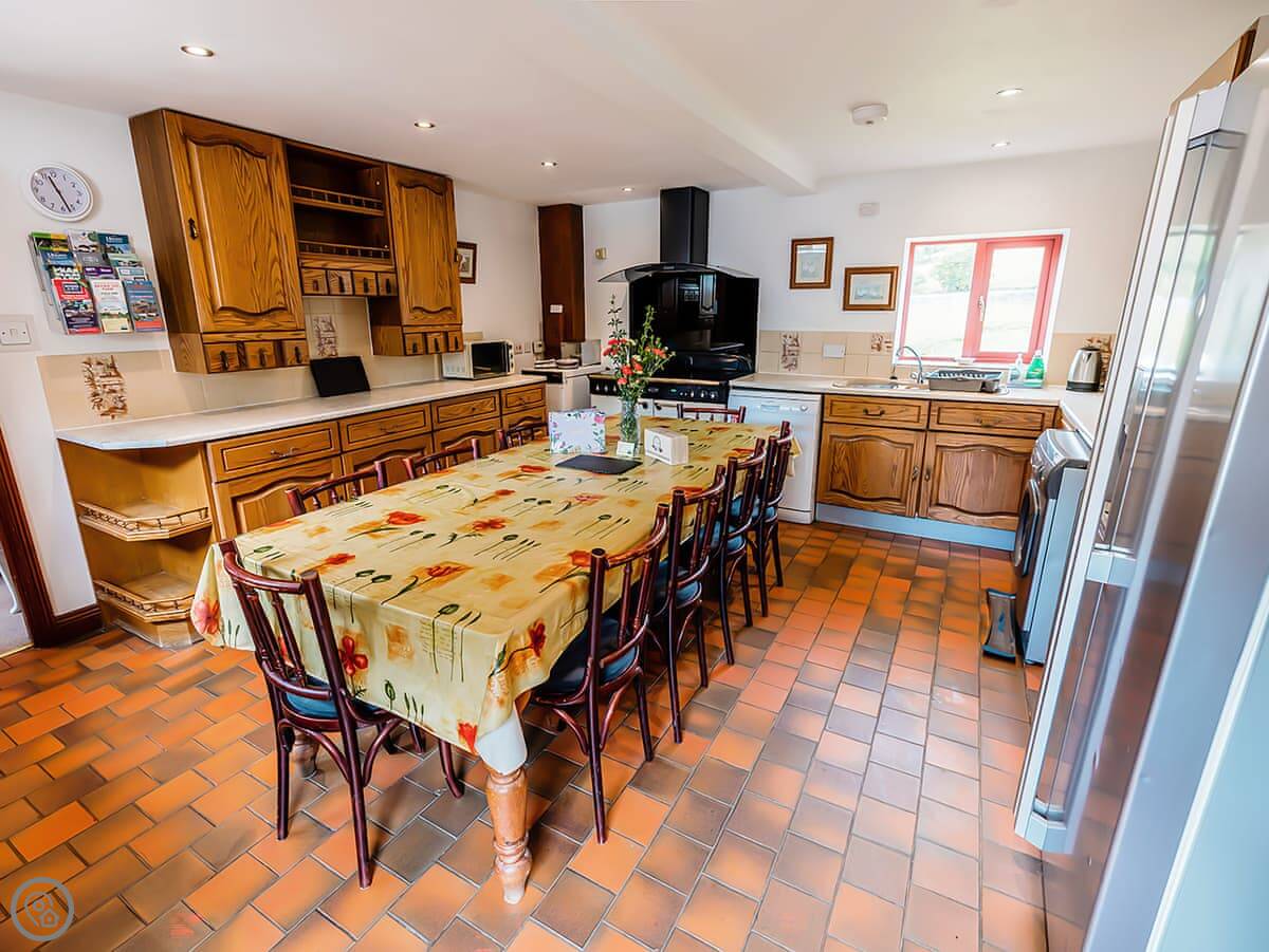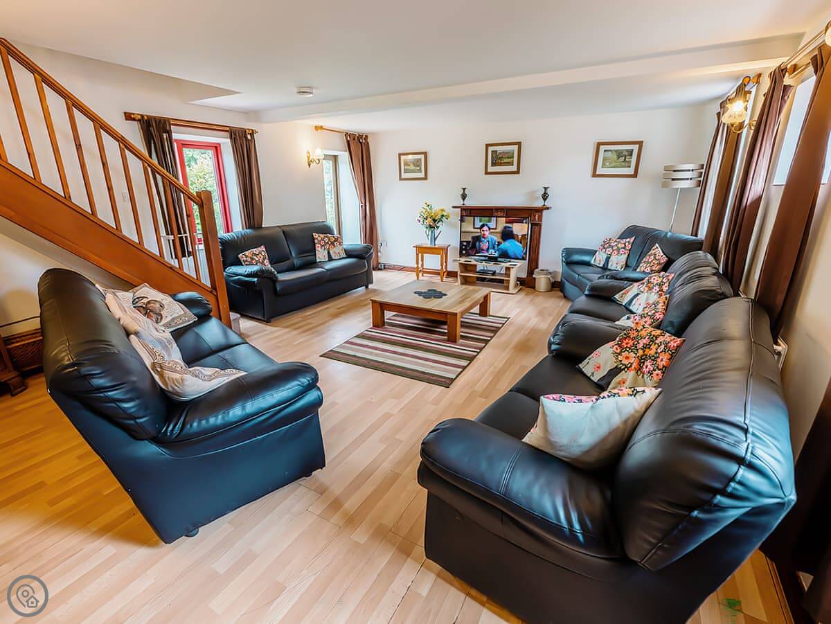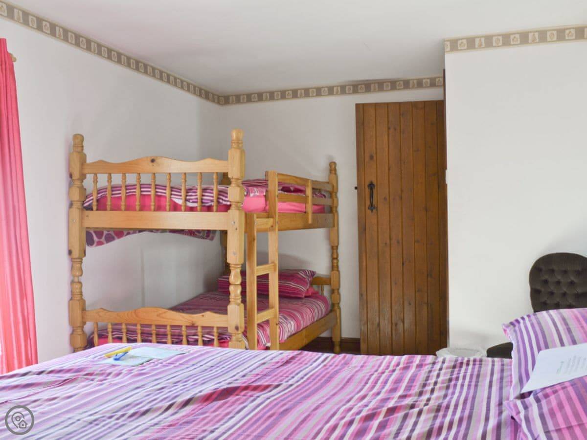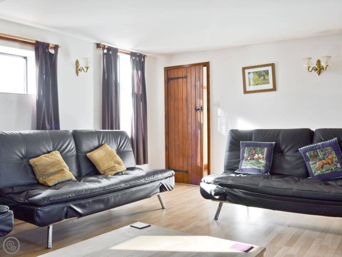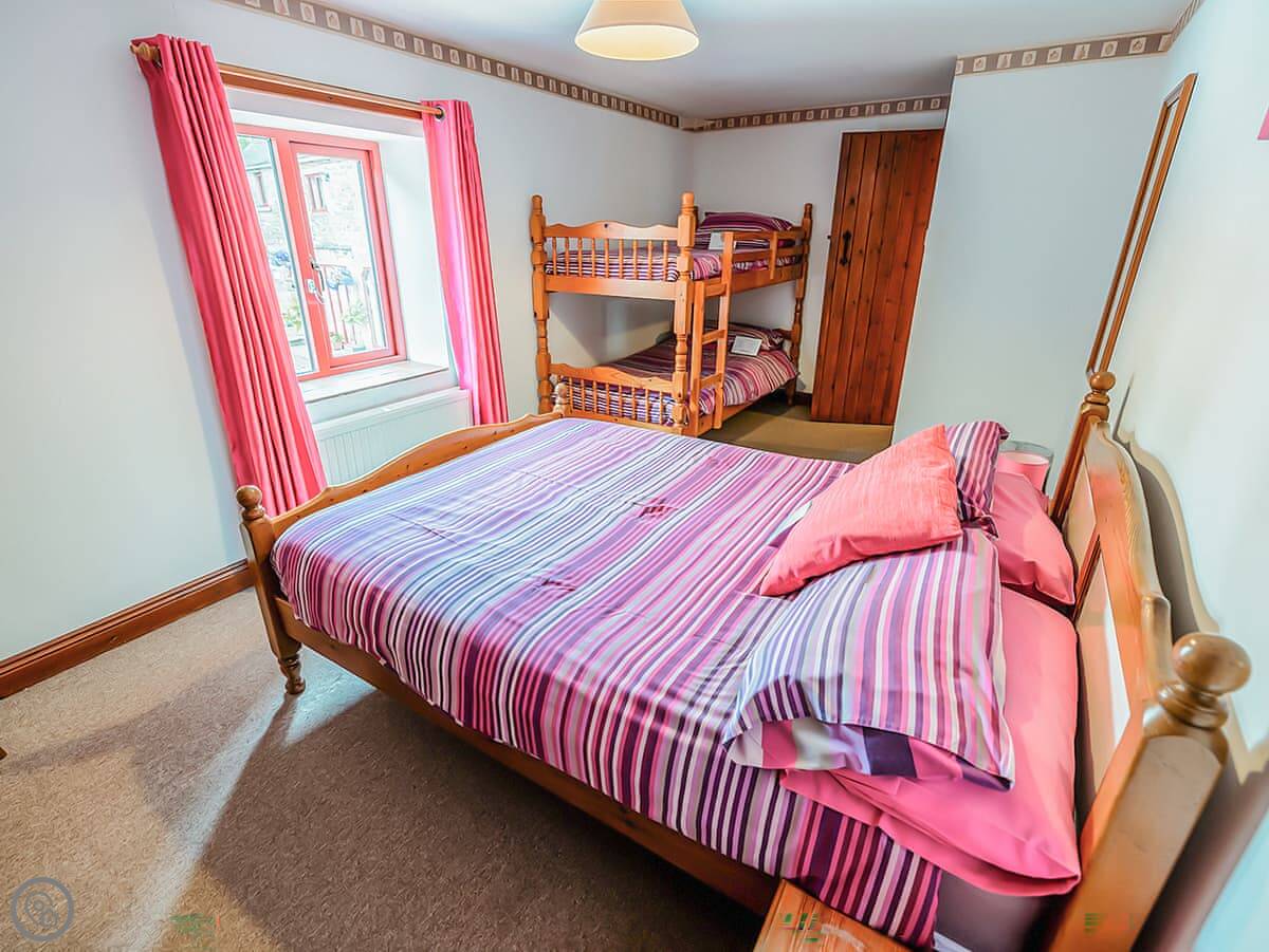 Pine Cottage is in Waterhouses, right on the edge of the Peak District. It’s one of a group of barns in a courtyard. It sleeps twelve, with four bedrooms. There are three bathrooms, which should help with that many people.