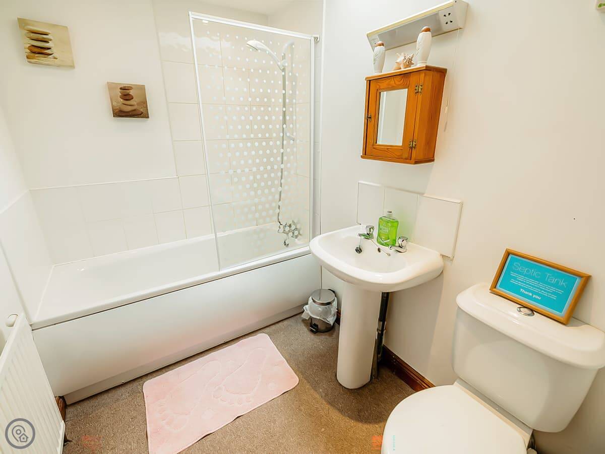 Inside, it's got what you need. There's a washing machine and dishwasher, WiFi, and TV. Bedding is included. We've got a cot and a highchair if you need them. Parking is on site.