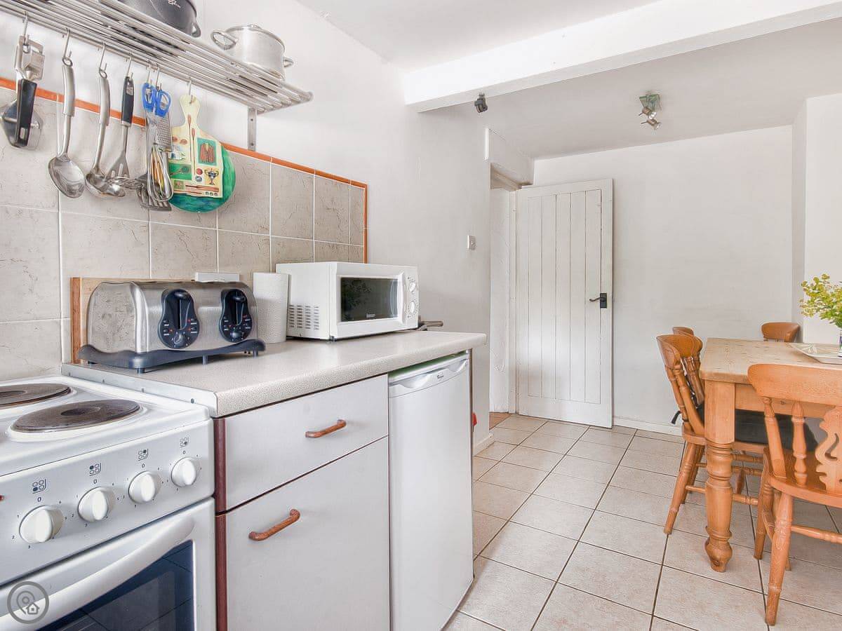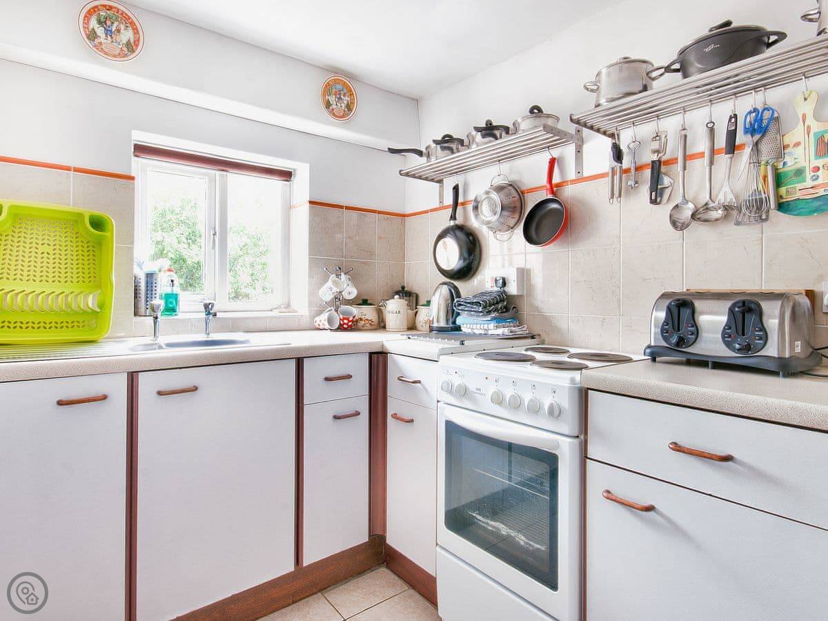 It sleeps four. Two bedrooms, both with a double bed. There are two bathrooms, which is handy. The facilities are decent: you've got a dishwasher, washing machine, TV and woodburner, as listed.