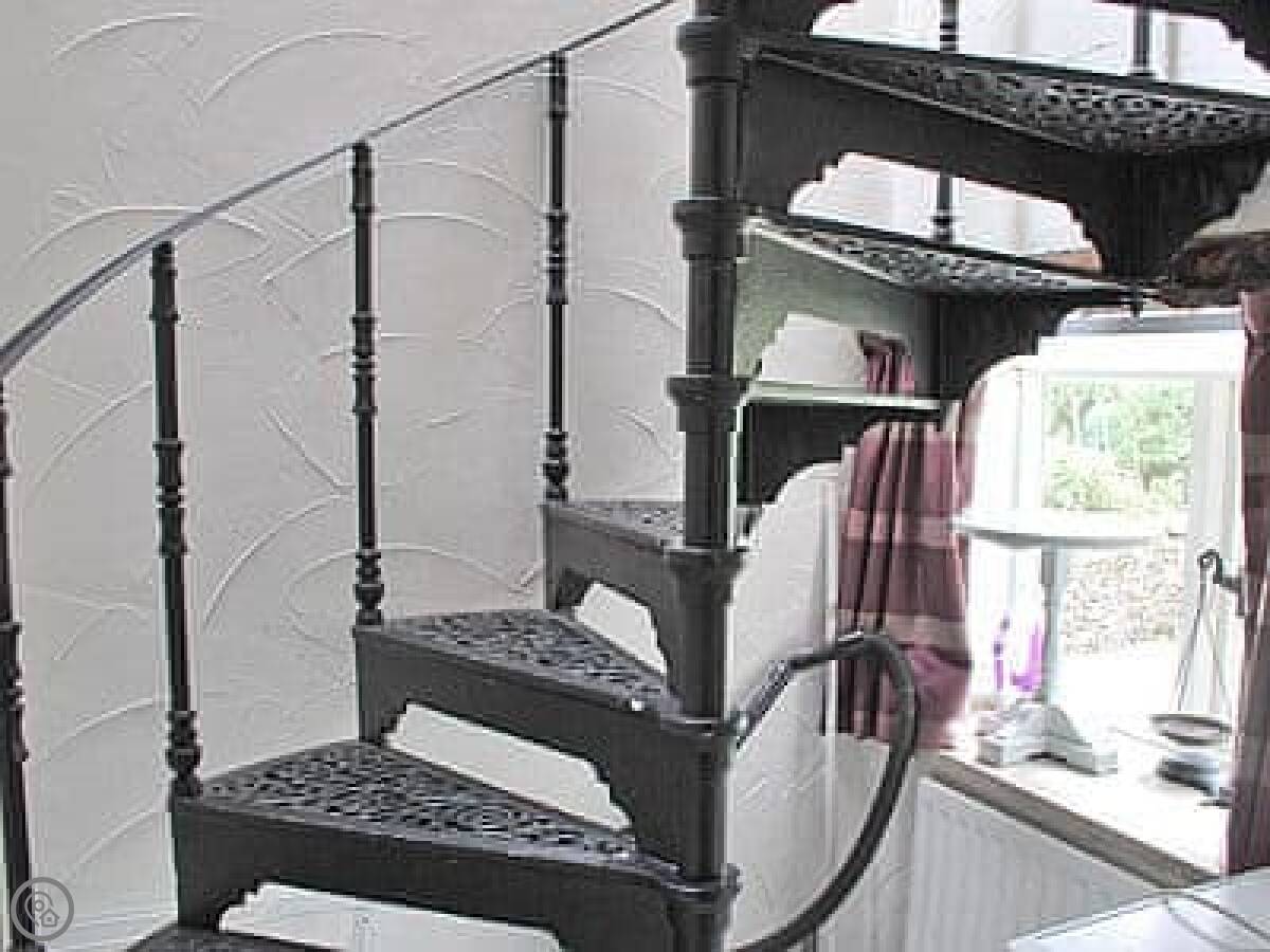 The stairs inside are quite steep and narrow. They are open tread, too, so you'll want to watch your step and keep an eye on kids. There is a stairgate provided.