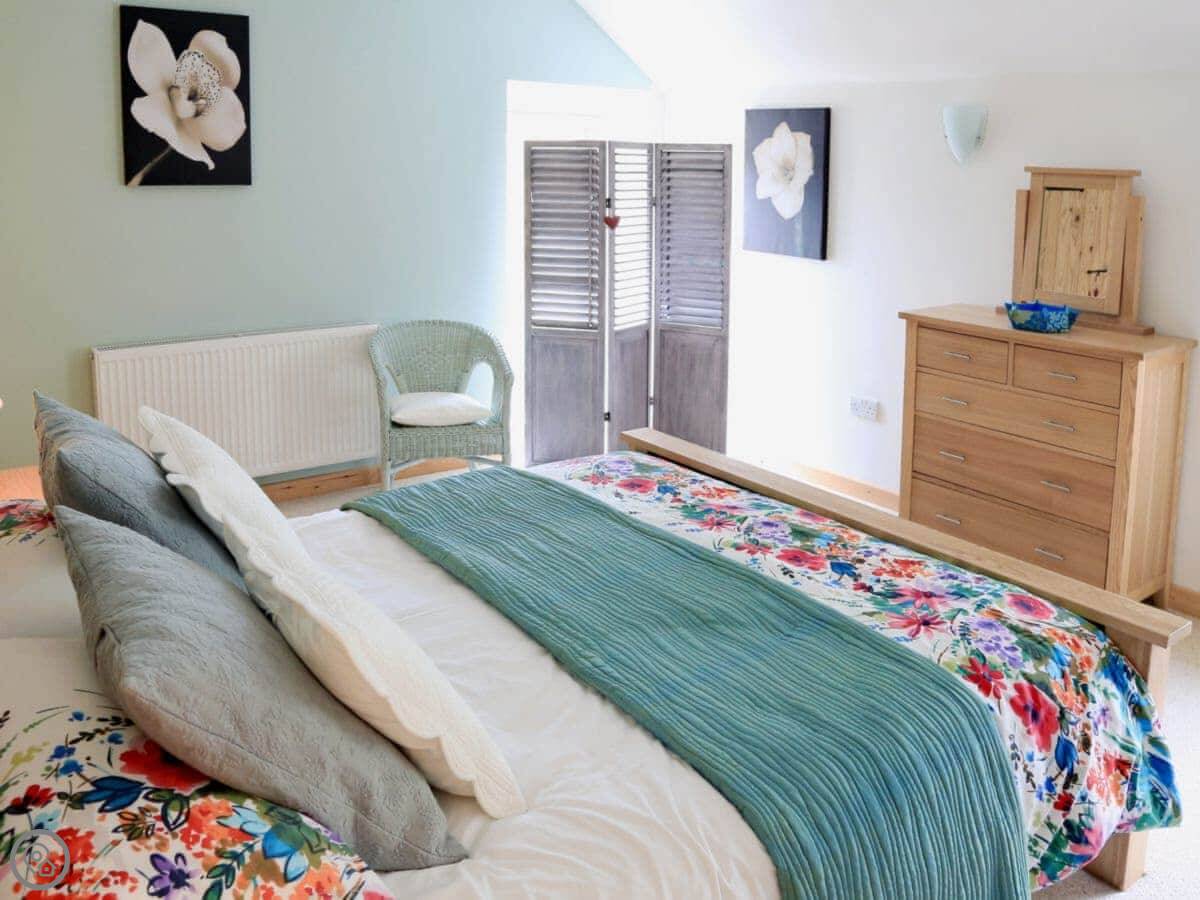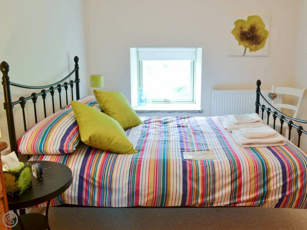 It sleeps eight. Four bedrooms, two bathrooms. It's got a 5 Star rating, which means everything is in good order. There's a wood burning stove for cooler evenings.