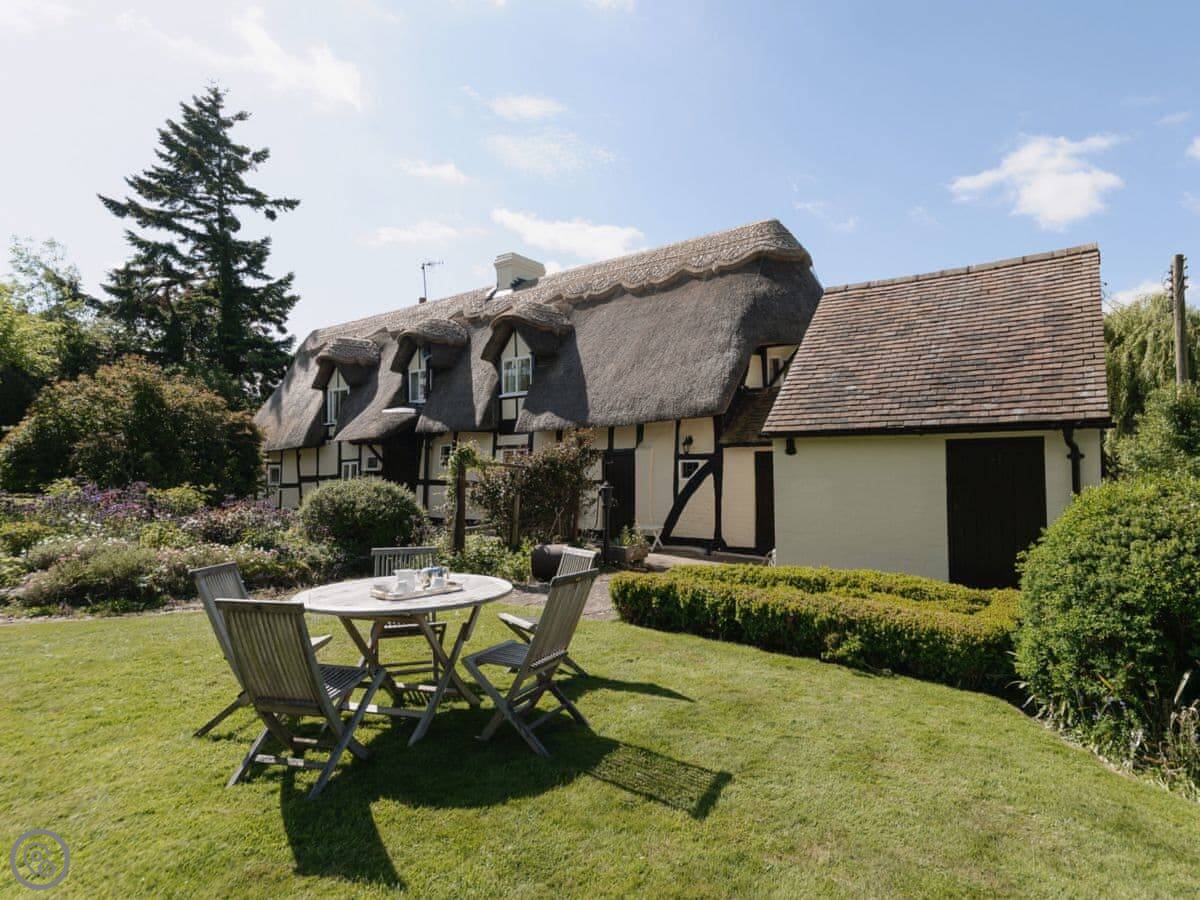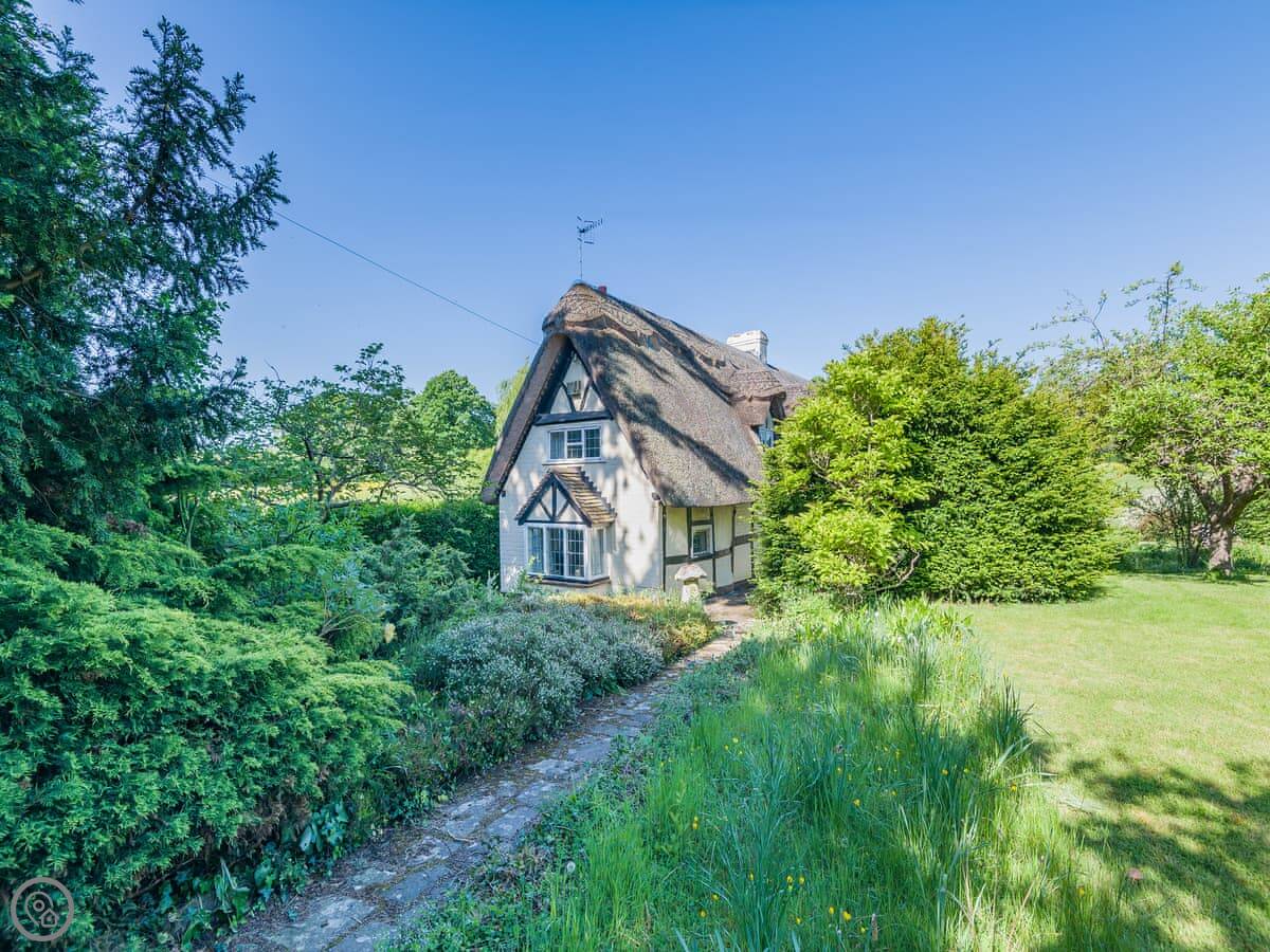 This is Glebe Cottage in Callow End, Worcestershire. It's a detached house, one of the old black-and-white timber frame ones with a thatched roof. You really are getting an old house, so it's not perfect.