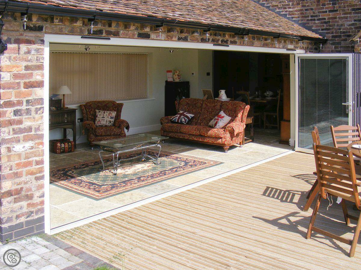 For facilities, it has a washing machine, dishwasher, cot, highchair, and a stairgate. Bedding and towels are included. You can bring one dog. There’s a BBQ in the garden.