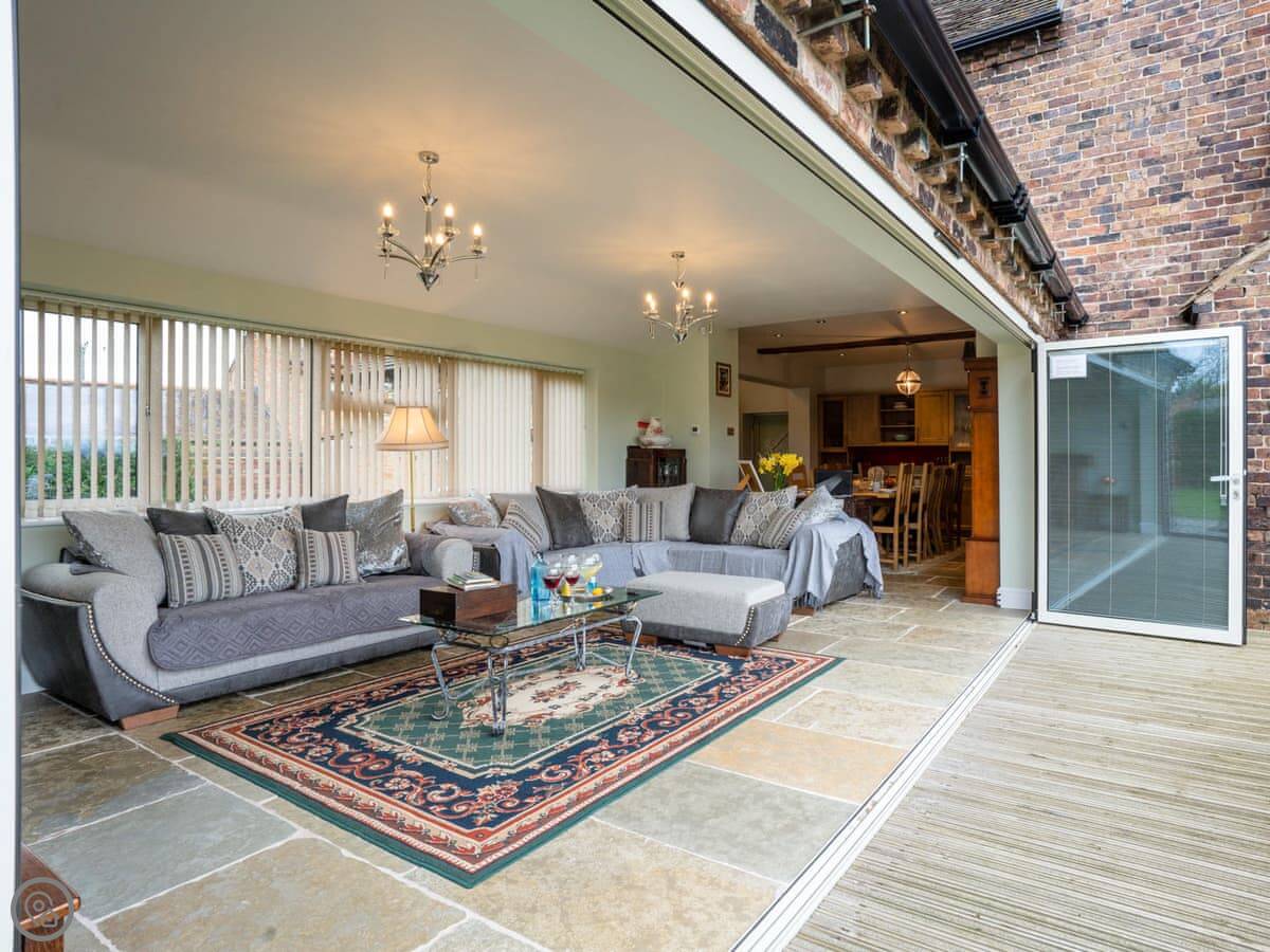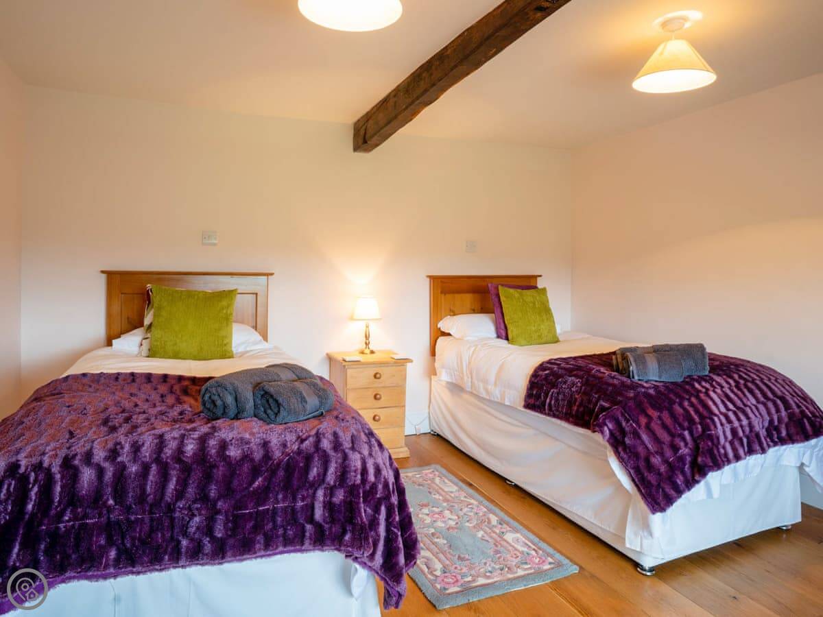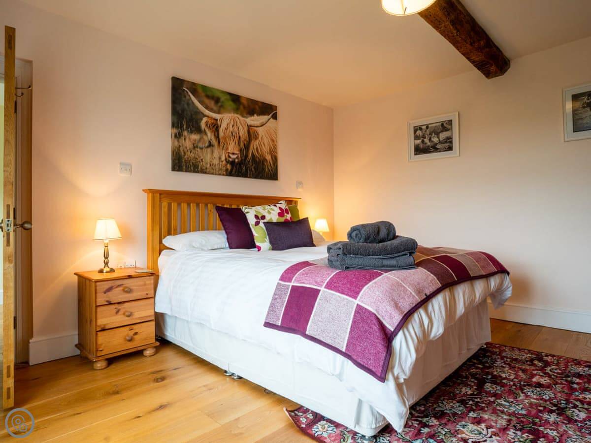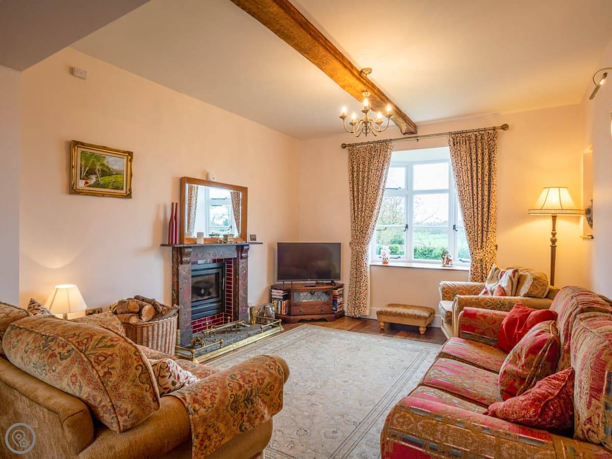 It sleeps up to ten people. Five bedrooms, three bathrooms. It has a 5 Star rating, which means it’s well-equipped and kept to a high standard. The kitchen has an electric Aga and a steam cooker. There’s a wood burner in the sitting room.