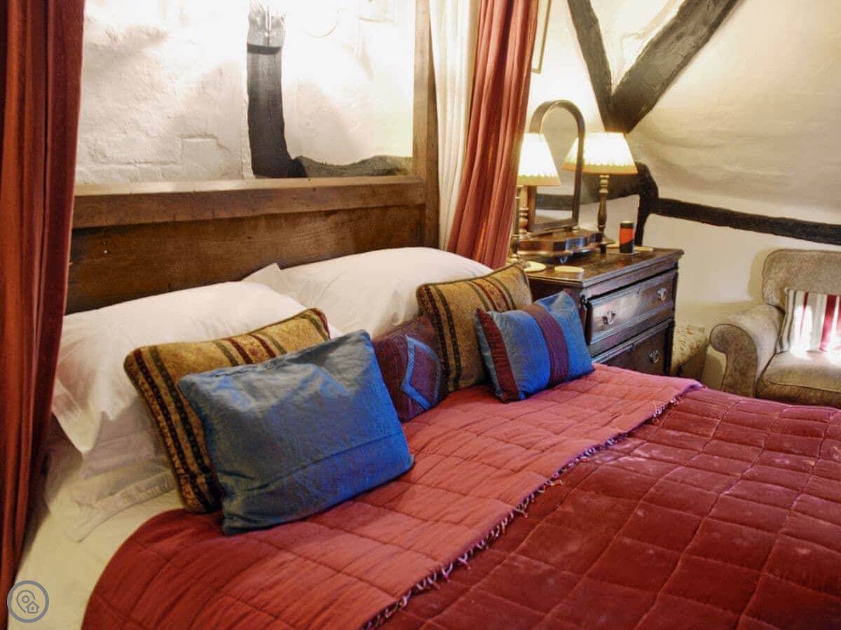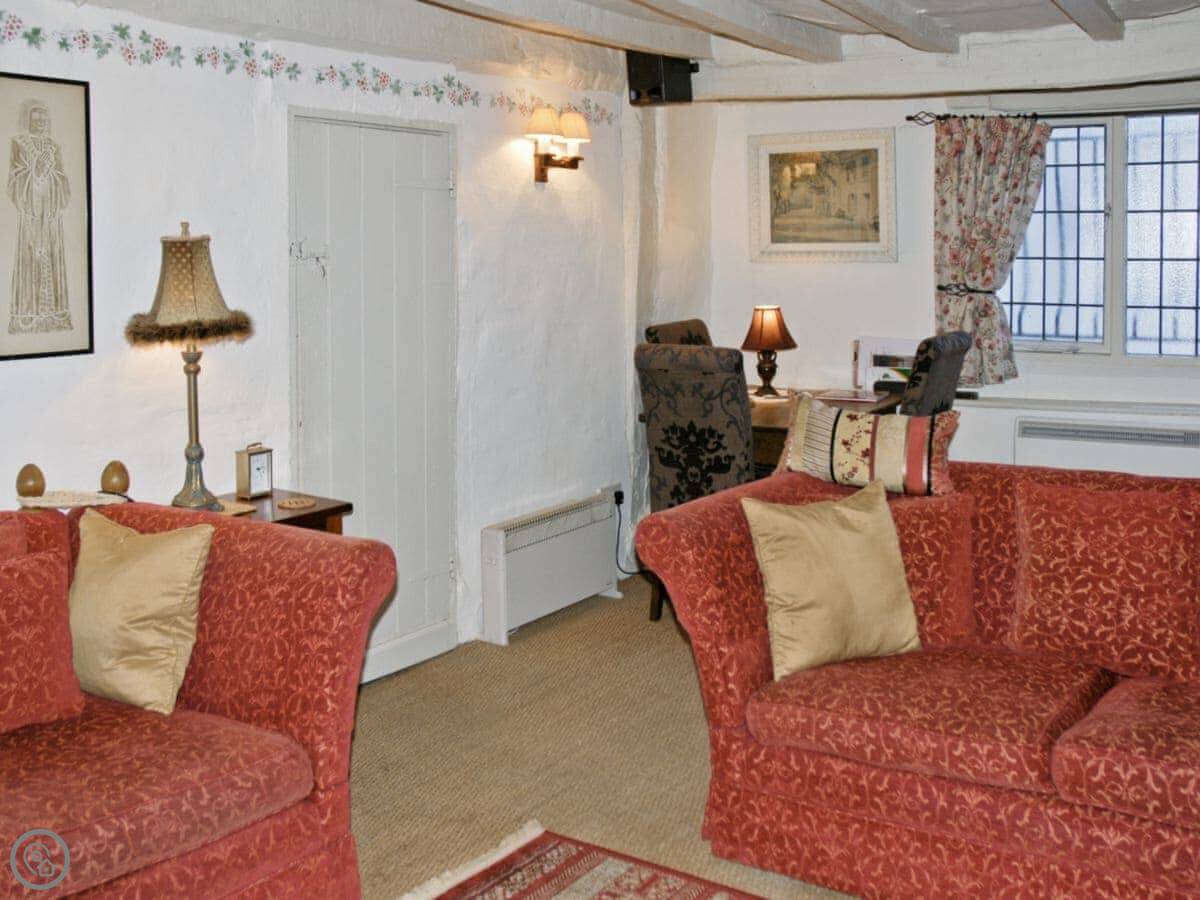 It's one of a small group of cottages, all quite old. It’s got a thatched roof, which you don't see much these days. The upstairs beams are low. Just watch your head. The stairs are the old winding type, so take care on them.
