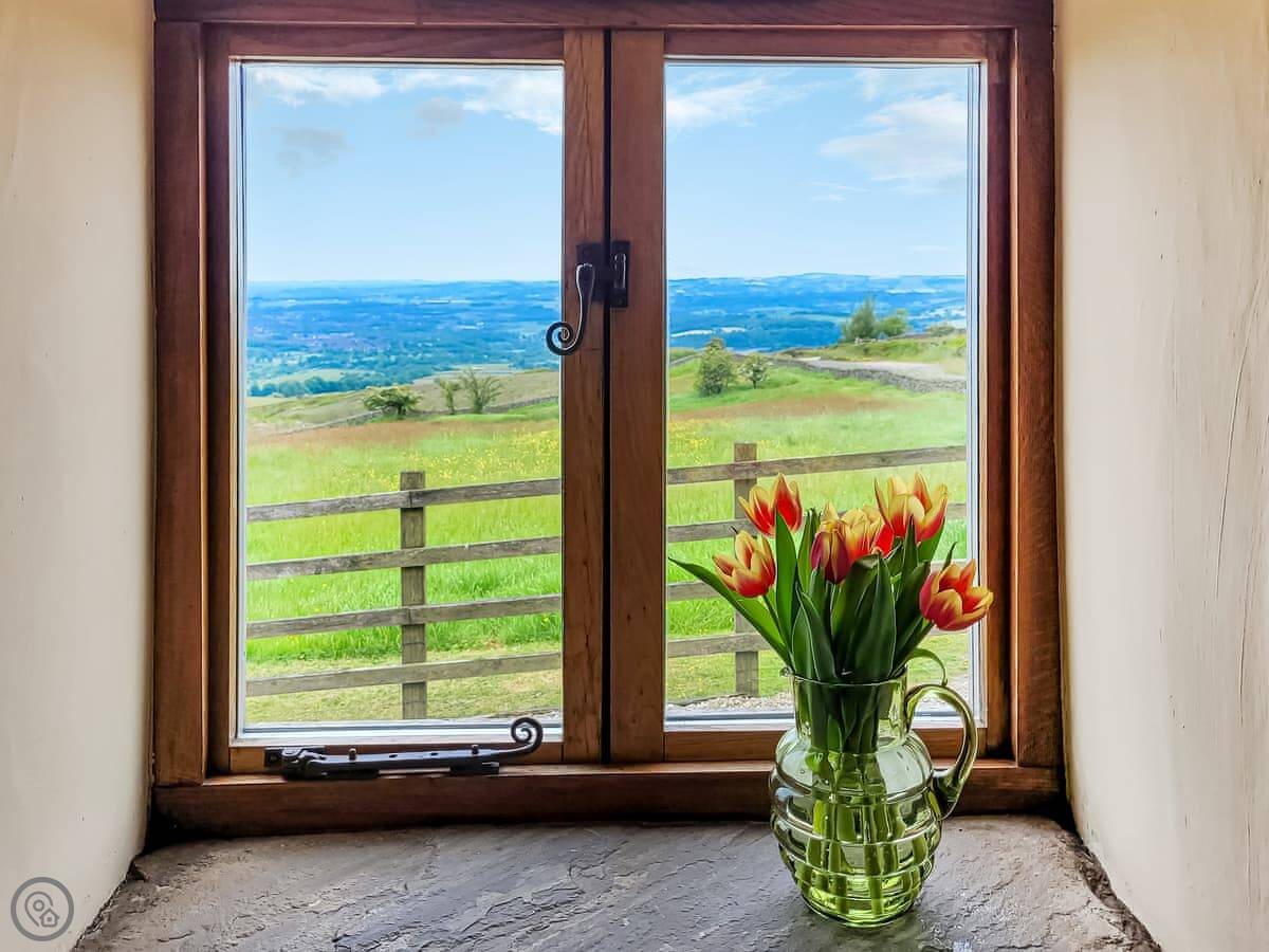 Situated on a country road, this attractive detached barn set in the grounds of the owners’ home has been lovingly converted, retaining many original features and beams. Celebrating excellent views over the surrounding countryside and superb walks from the door, with numerous local footpaths, the Old Byre makes an ideal base for visiting all the attractions the Peak District has to offer including Chatsworth House, Alton Towers, Haddon Hall, Carsington Water, Cheddleton Steam Railway, Rudyard Lake and Meerbook Reservoir to name just a few. Shop 2½ miles and pub 1 mile.