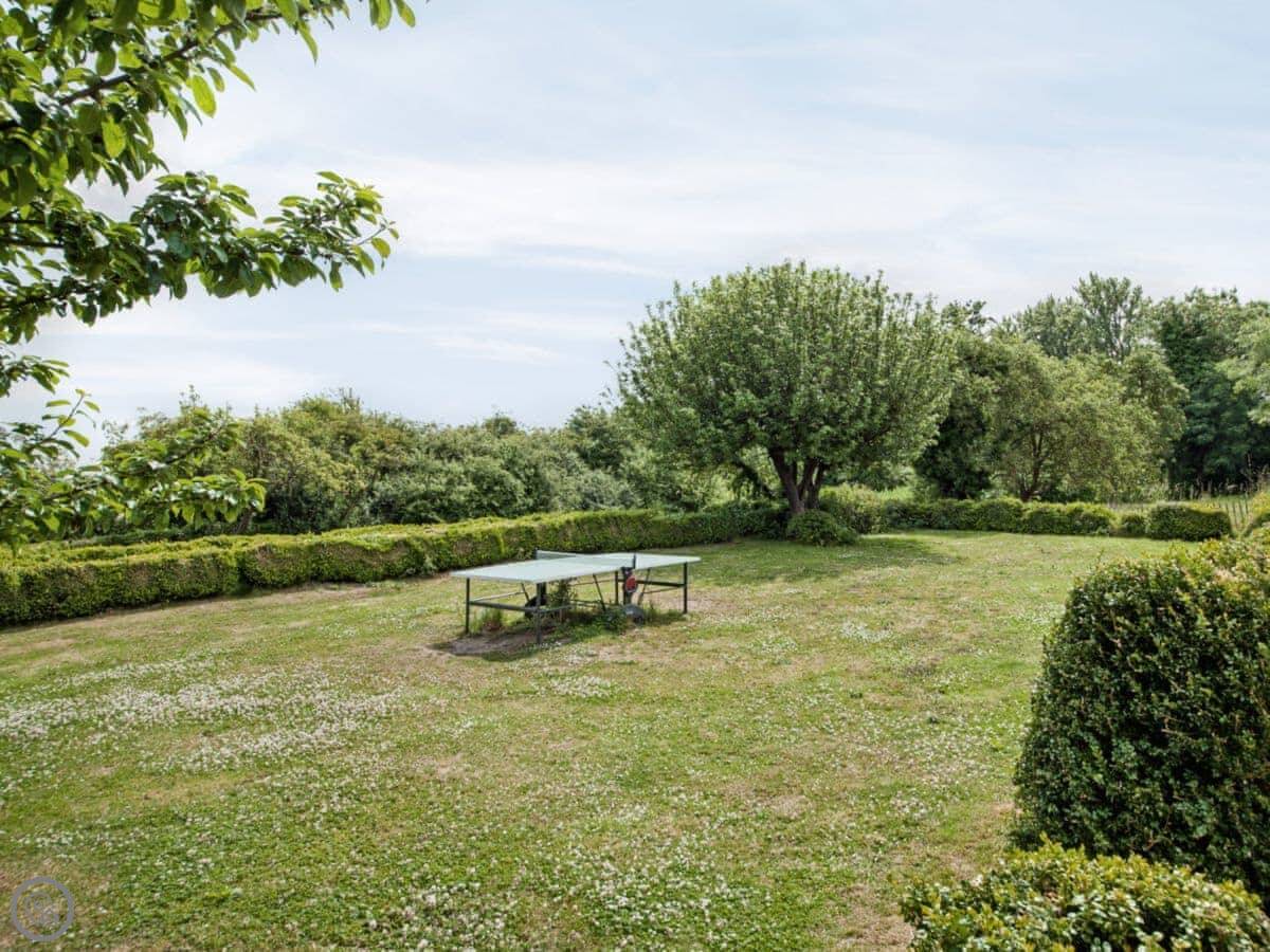 The views are good. You look out over parkland towards the River Severn and the Wrekin. There's a walled garden that gets the sun, and an orchard.