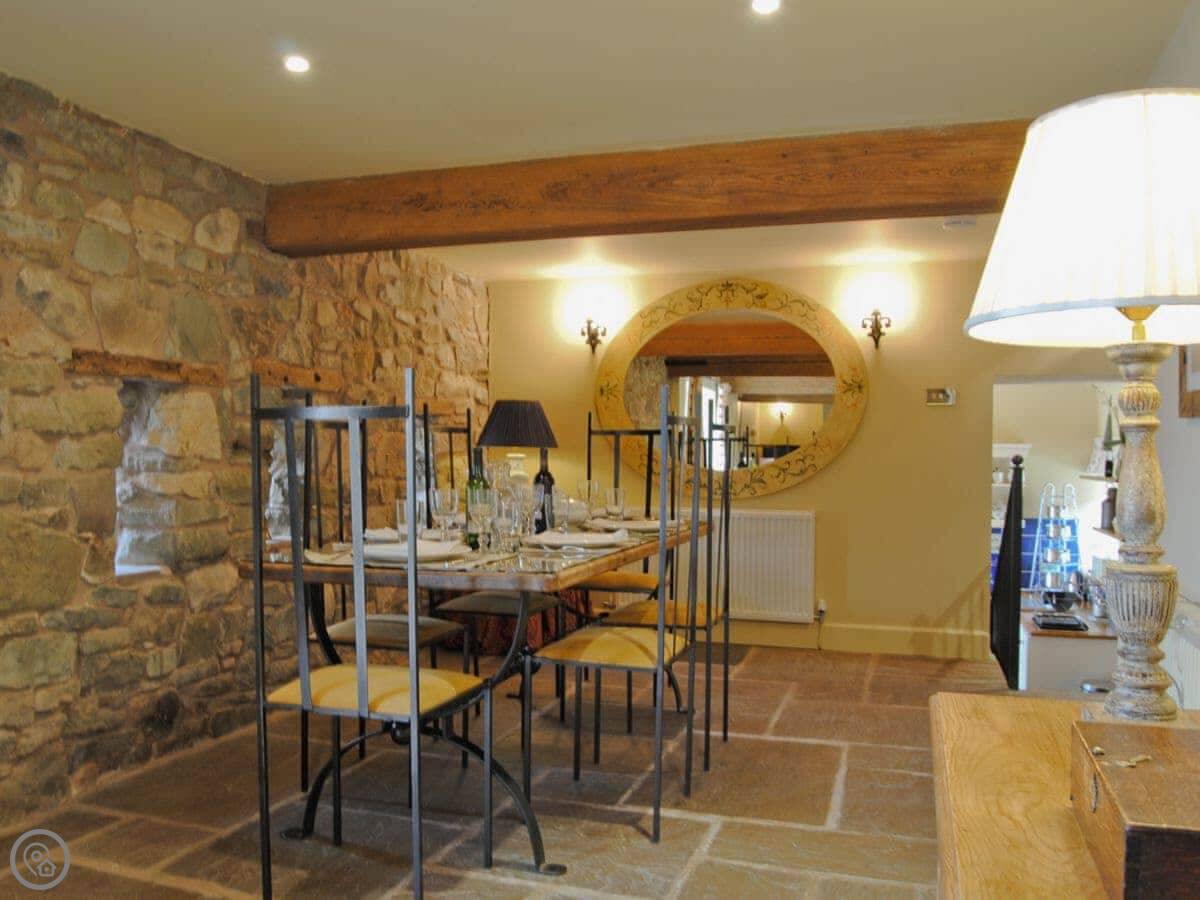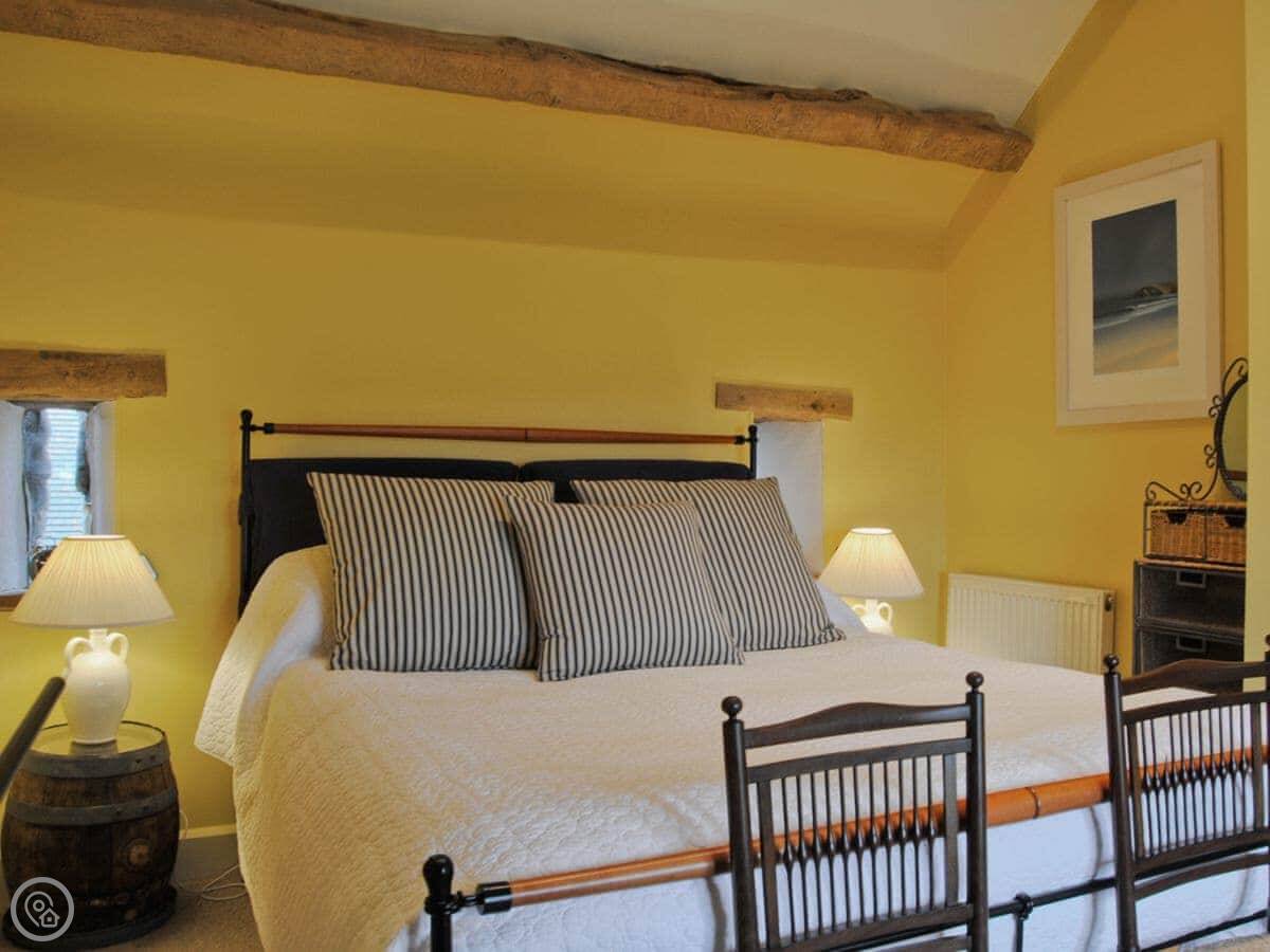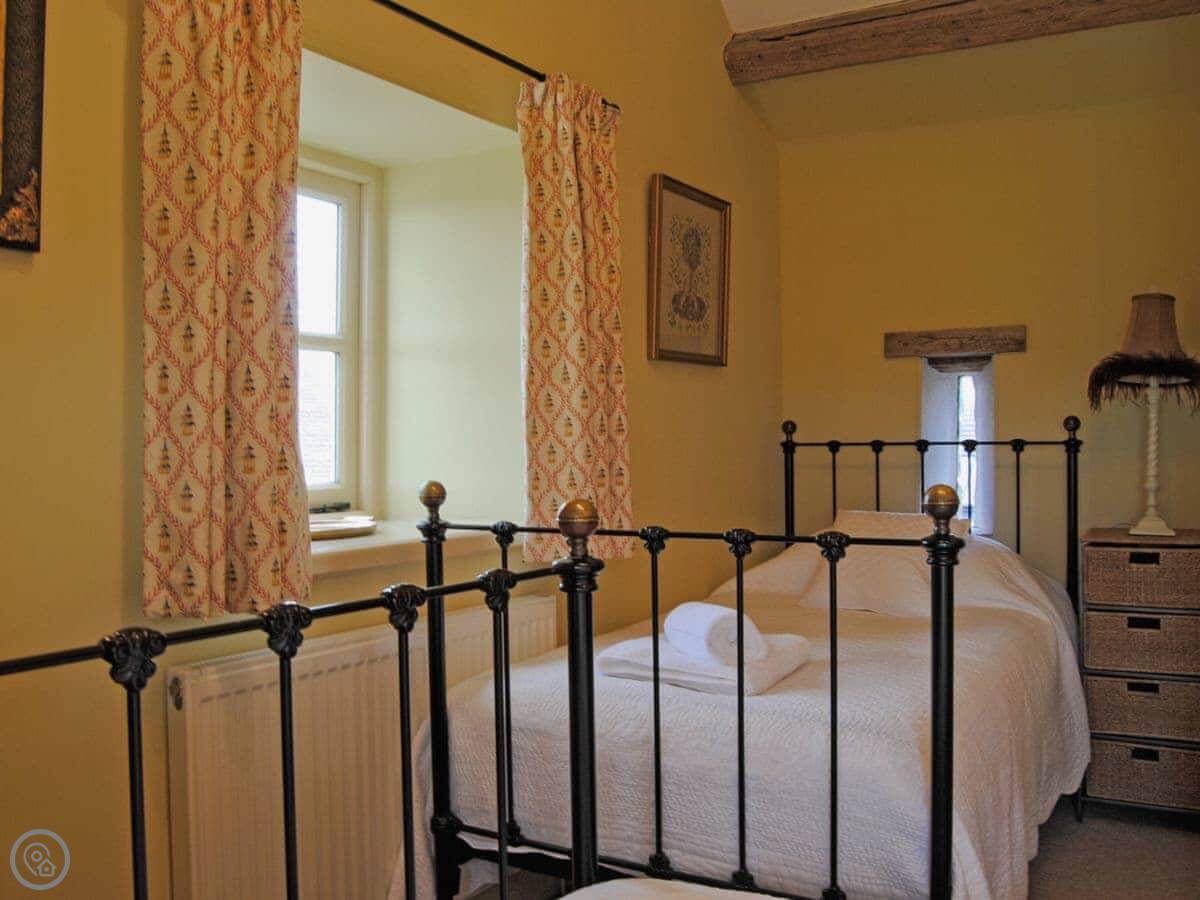 It sleeps five. Three bedrooms, two bathrooms. The second bathroom is just a shower and toilet. It's got a 4 Star rating. It's comfortable, not ultra-modern. We've kept the old beams and the feel of the building. The views from the windows are good, over the valleys.