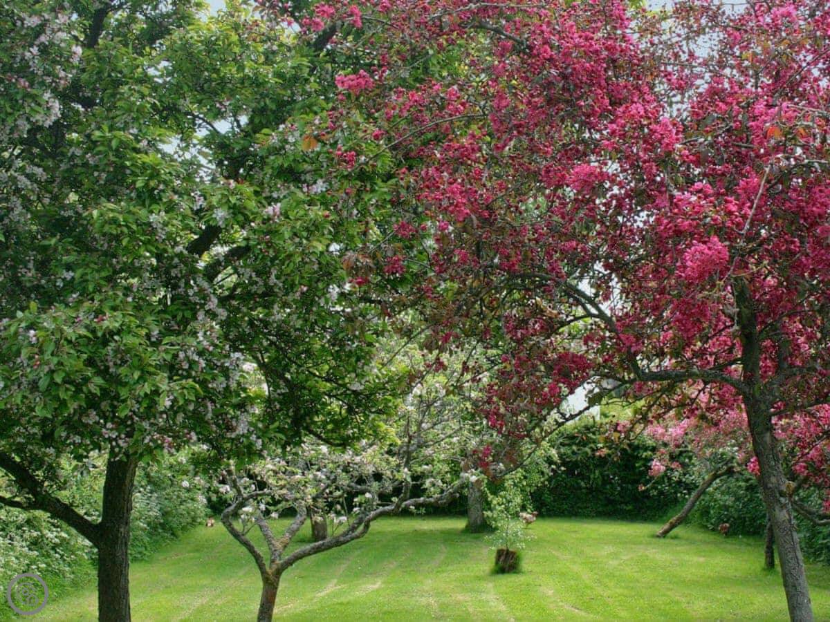 Outside, there's an enclosed garden with a patio. You can sit out there with a drink. It looks out over the orchard and fields.
