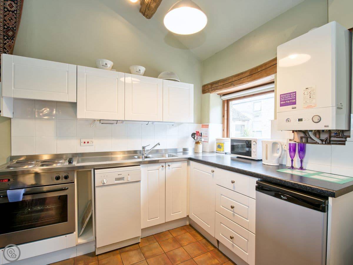 Being a listed building, it's got the thick walls and old windows you'd expect. It's part of an old chapel. That means it's full of character, but also that the layout is what it is. The rooms are what you'd call cosy. There's a patio area outside your door.