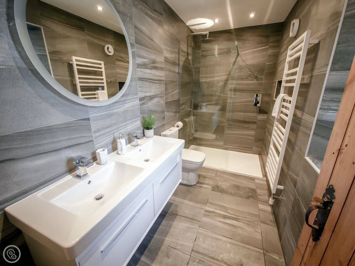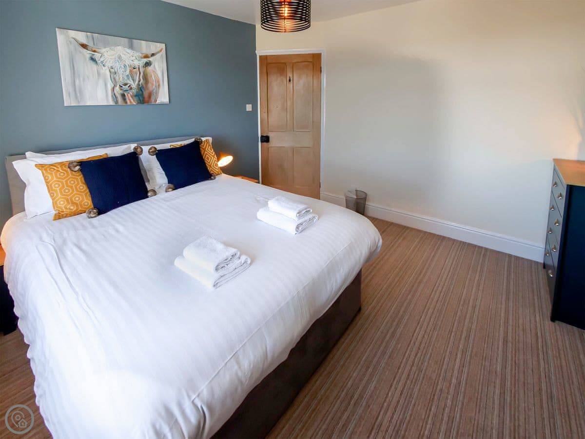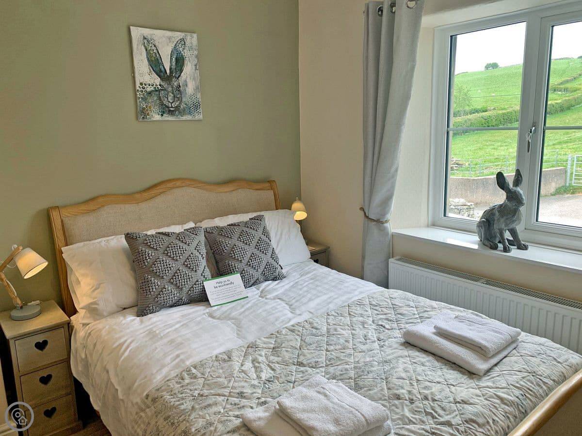 It sleeps six, in three double bedrooms. They all have good views out over the fields. There are two bathrooms, one is a wet room on the ground floor which is handy. It's got a 4 Star rating, so it's comfortable and well-equipped.