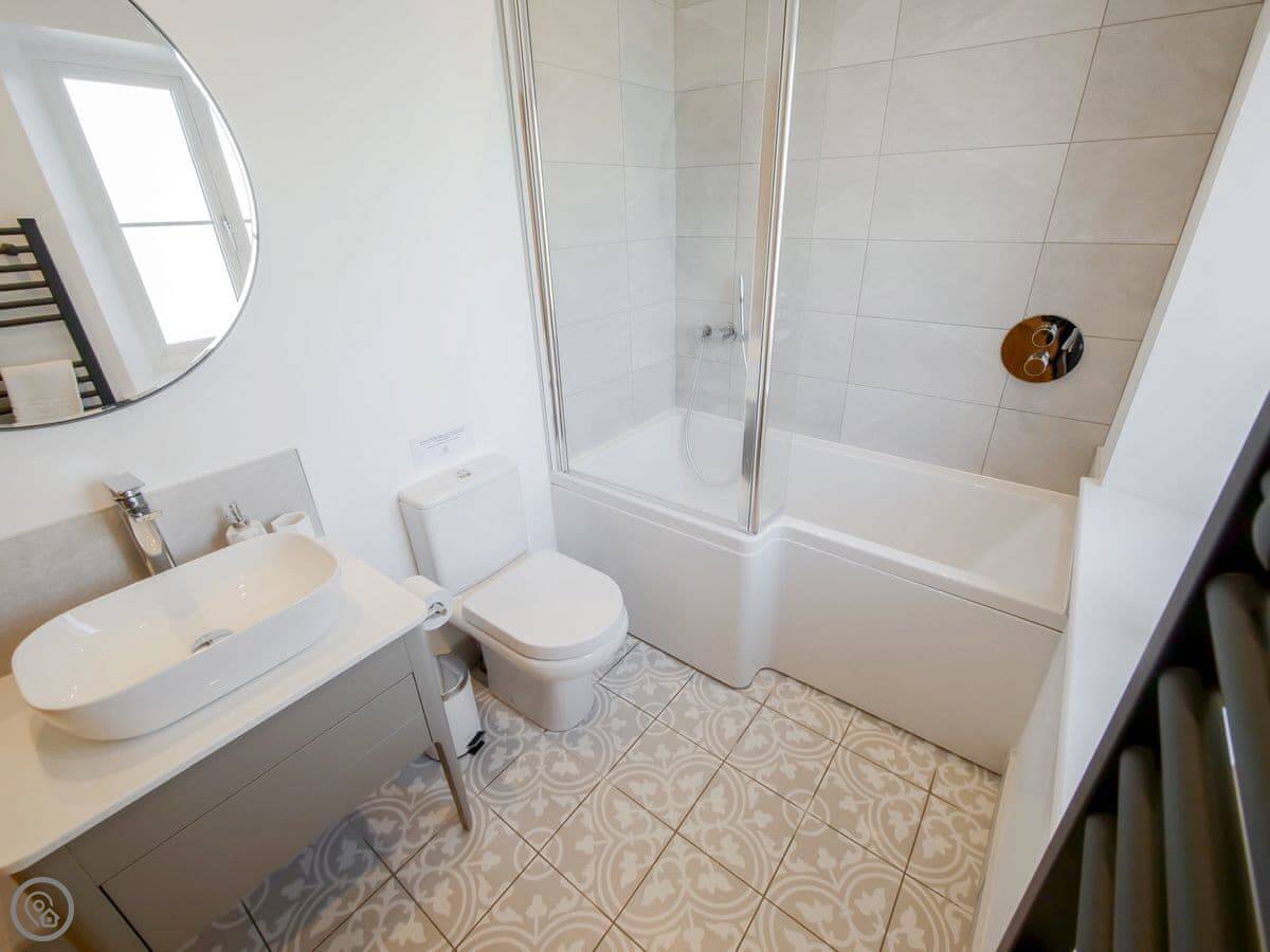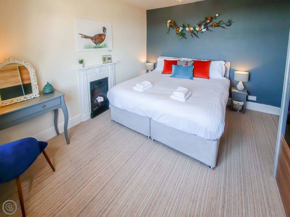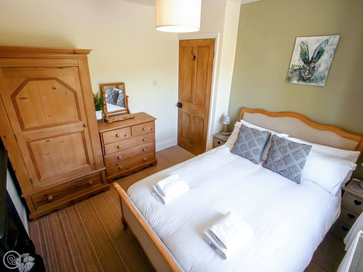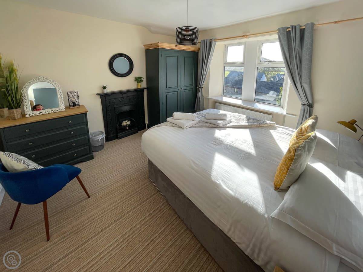 It sleeps six, in three double bedrooms. They all have good views out over the fields. There are two bathrooms, one is a wet room on the ground floor which is handy. It's got a 4 Star rating, so it's comfortable and well-equipped.