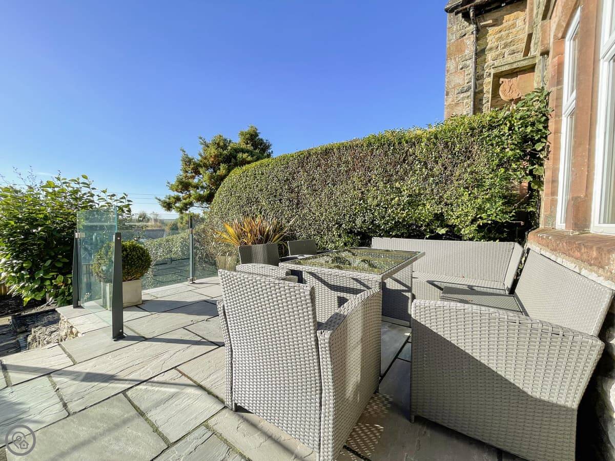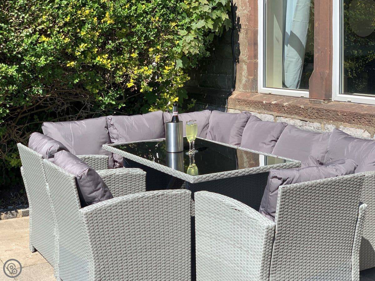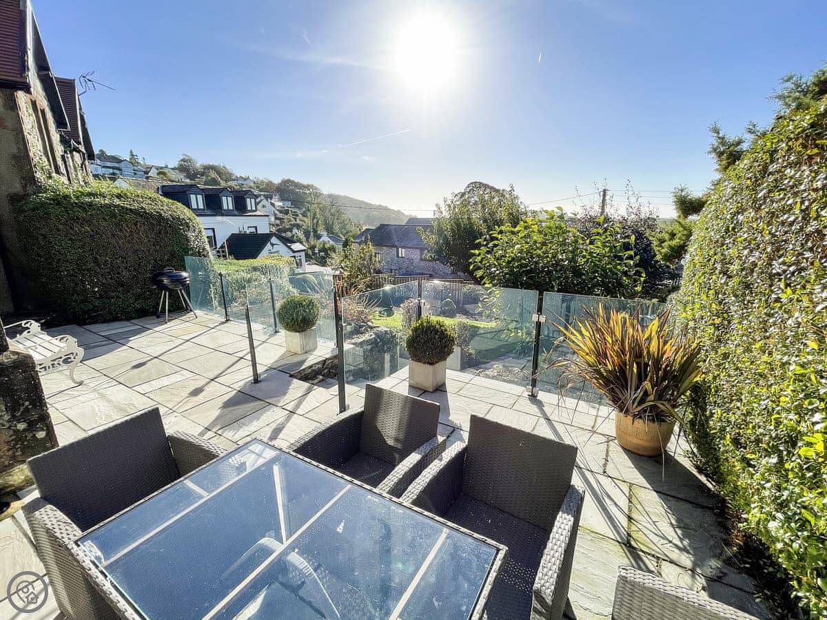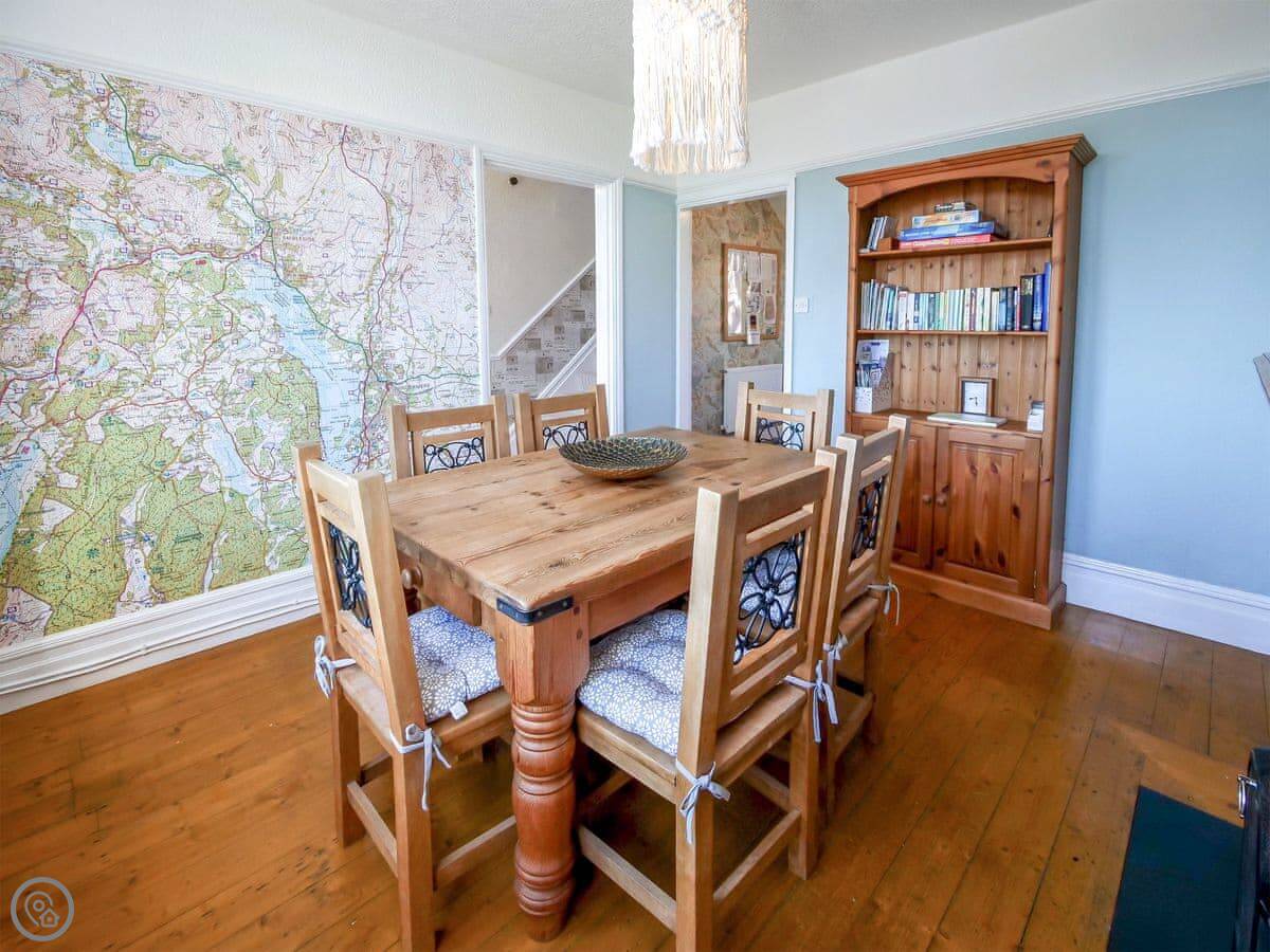 The house has a wood burner in the sitting room and an open fire in the dining room. The garden is tiered, so there are a couple of different patio areas. It gets the evening sun. We leave some maps and books for people to use.