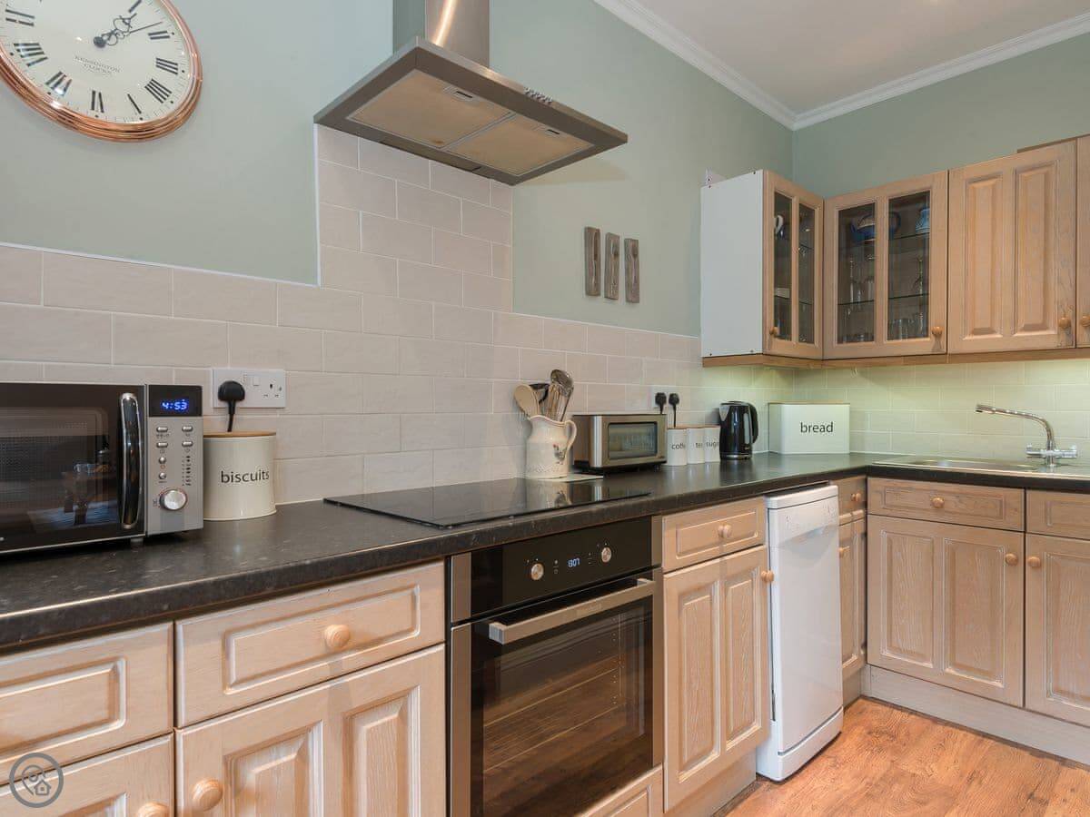 It sleeps four. Two bedrooms, both with their own bathroom. The rating is 4 Star. It's been done up nicely, everything works, and it's comfortable. Being an old building, the floors aren't level in places, which is normal.