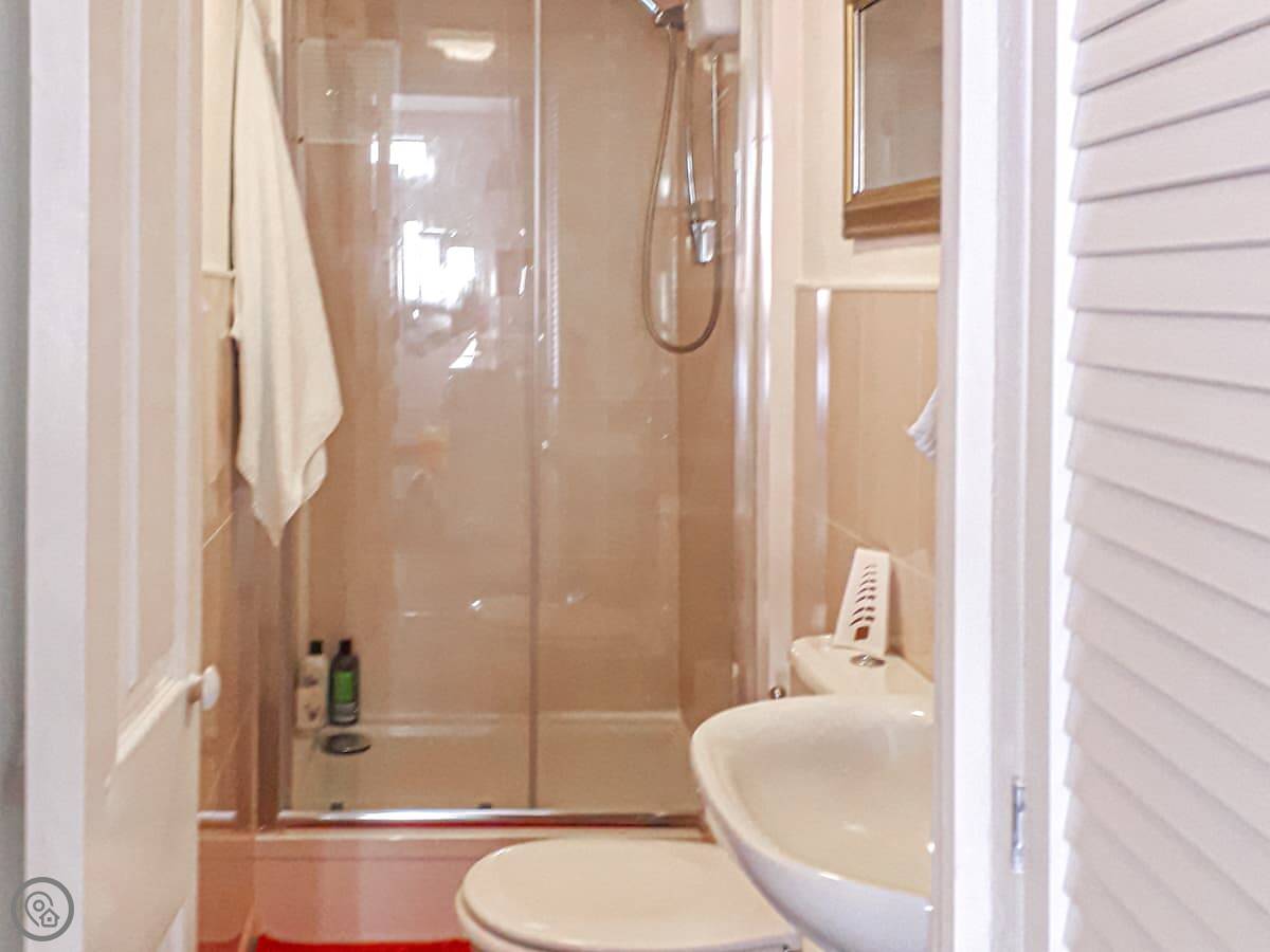 It's all on one level and sleeps two. One bedroom, one bathroom with a shower. It's got a 4 Star rating. It's wheelchair accessible at the entrance.
