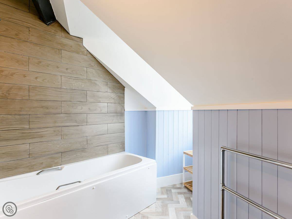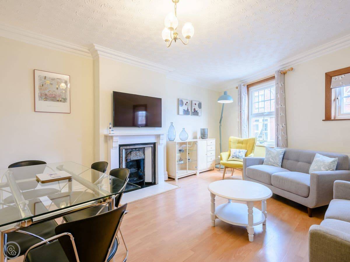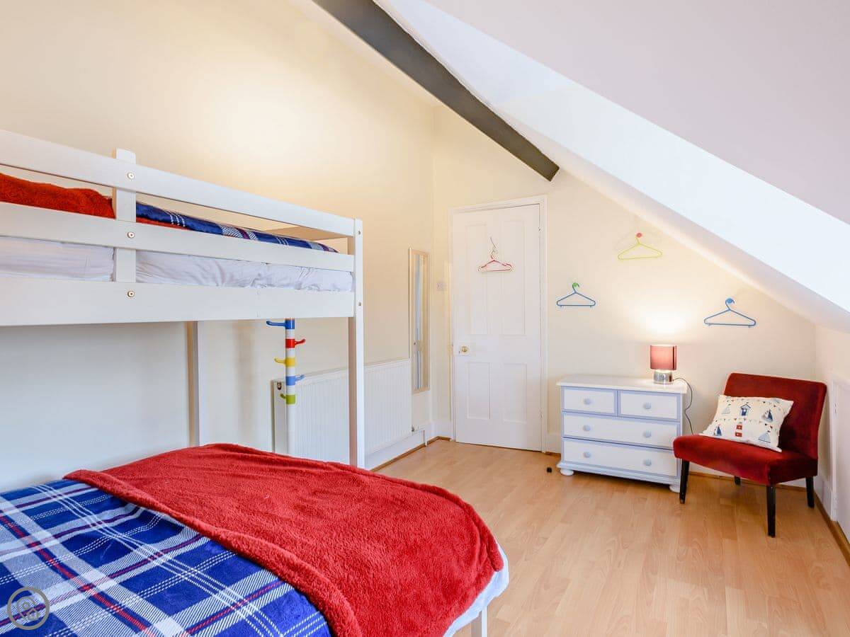 The apartment sleeps six. It has three bedrooms and two bathrooms. It's got a 5 Star rating, so everything is in good order. The stairs inside are steep and a bit narrow. They're not a problem for most, but you should know.
