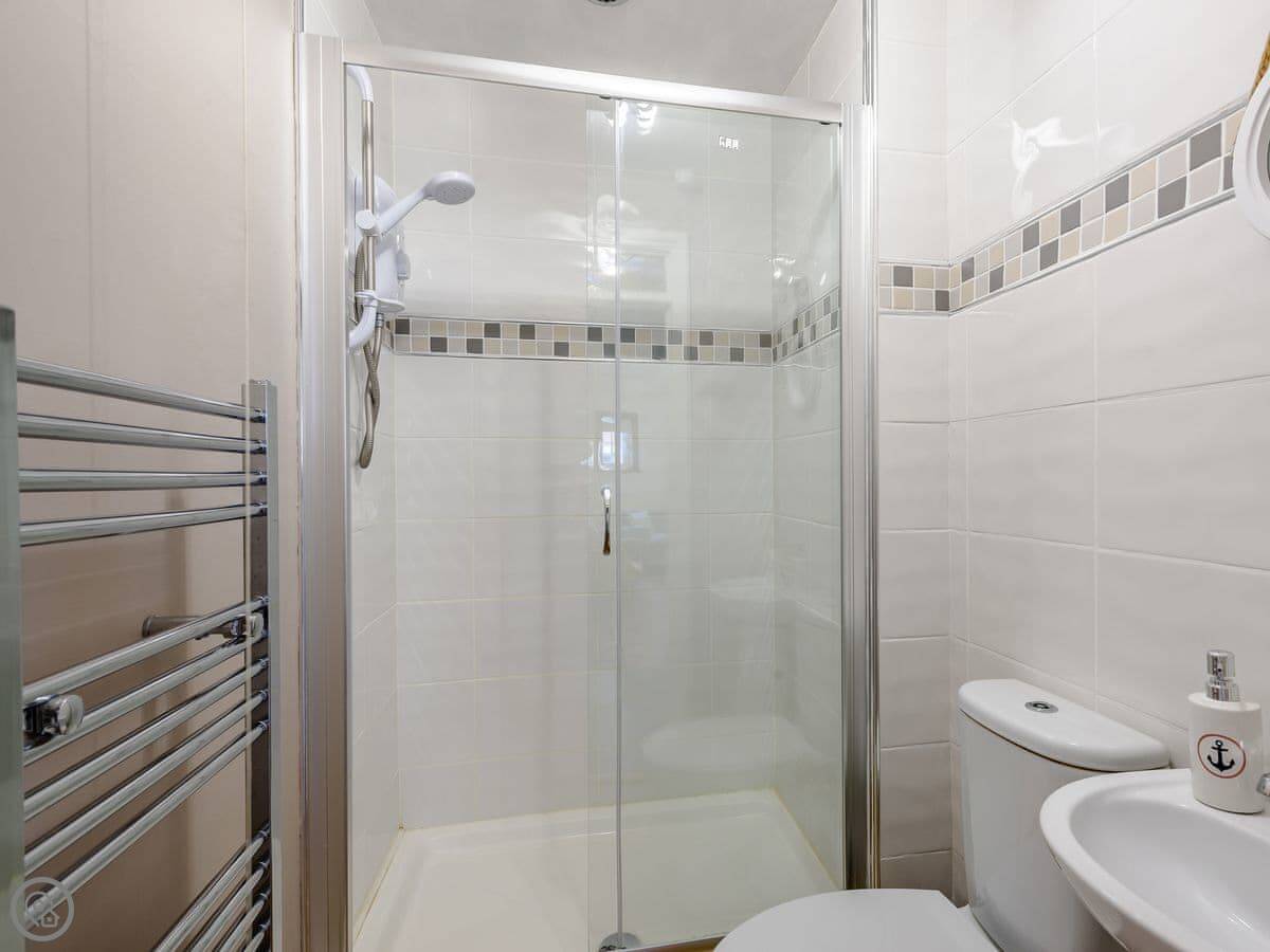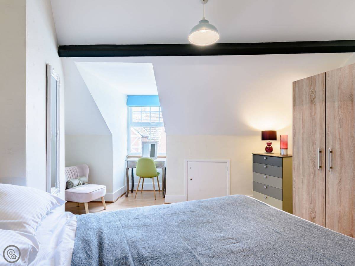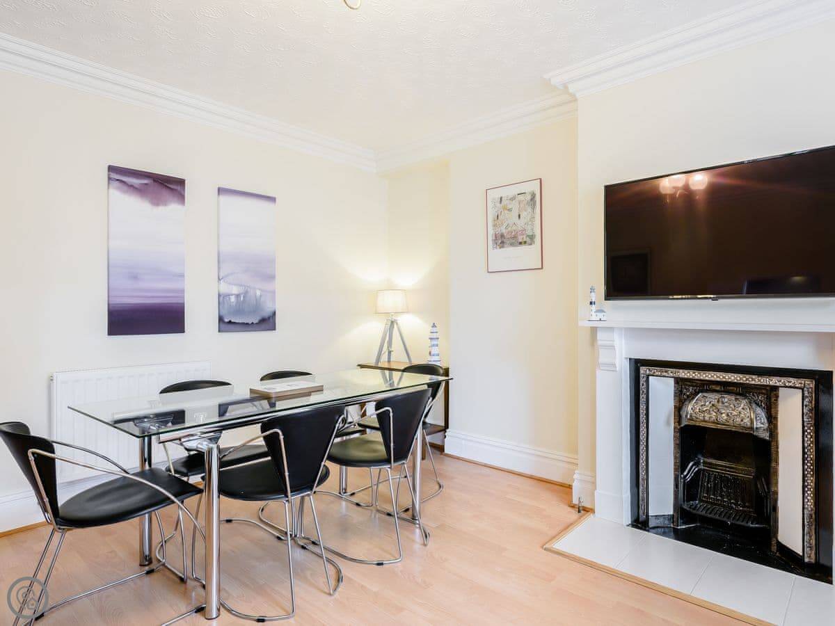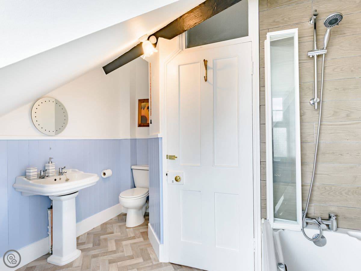 The apartment sleeps six. It has three bedrooms and two bathrooms. It's got a 5 Star rating, so everything is in good order. The stairs inside are steep and a bit narrow. They're not a problem for most, but you should know.