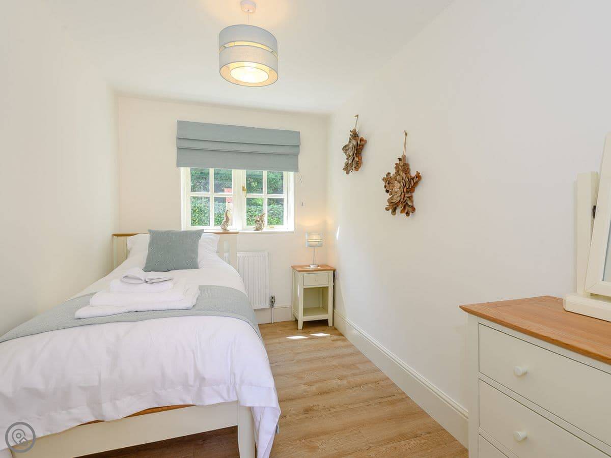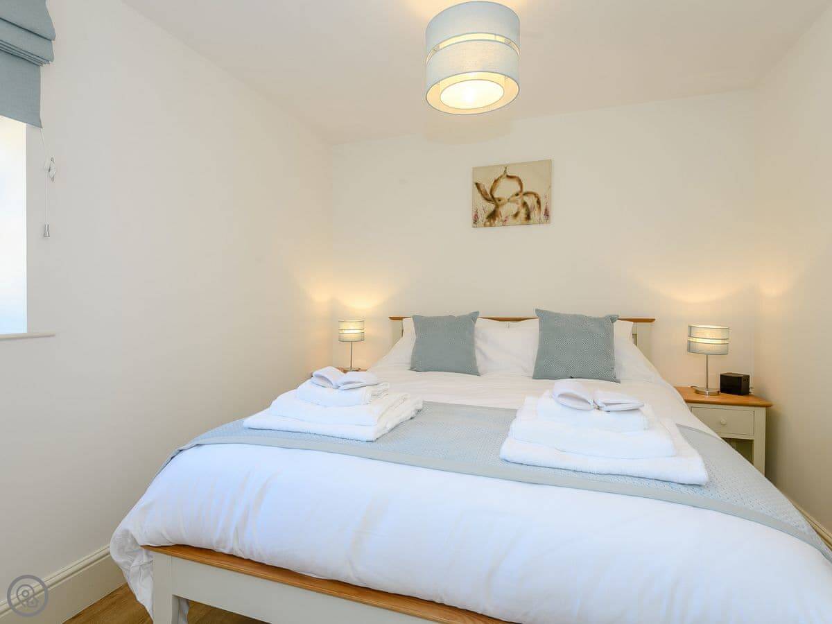 It sleeps five people. Three bedrooms, two bathrooms. One of the bedrooms and a bathroom are on the ground floor, which can be handy. It's got a 5 Star rating. That means it's a good standard, renovated recently. The towels and bedding are included.