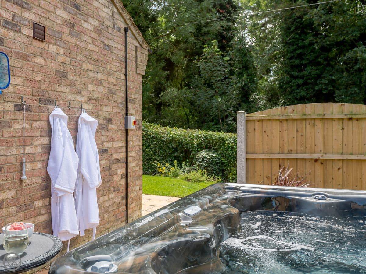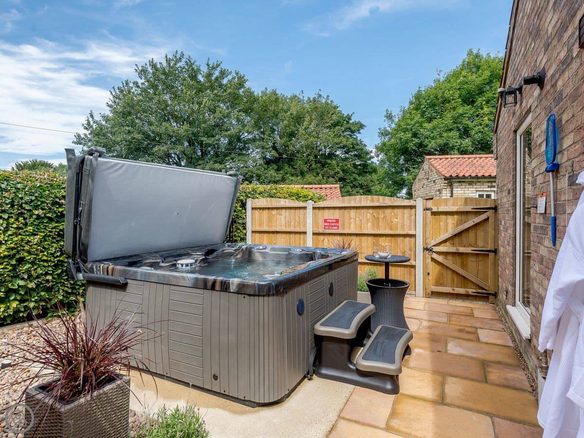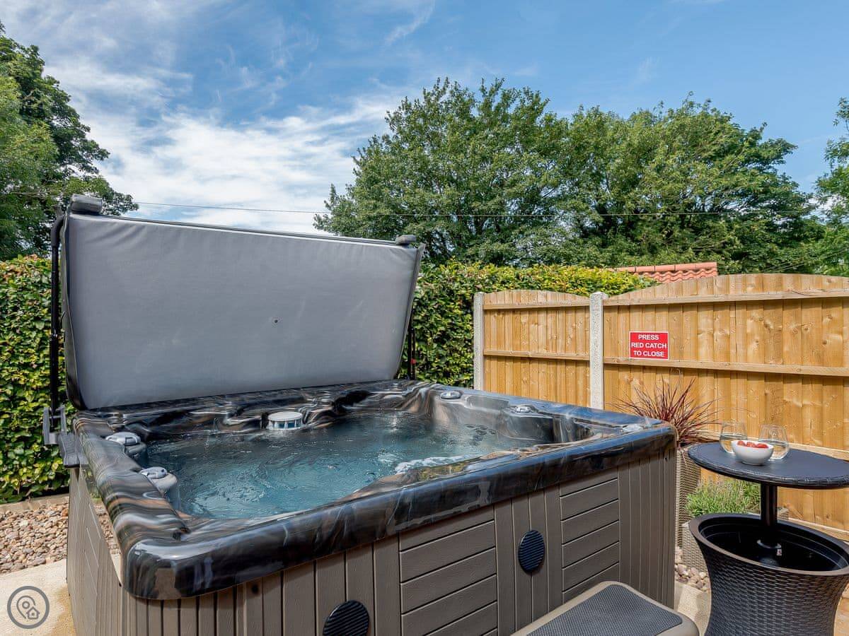 Outside there's a private garden with a patio. There's a barbecue you can use. There's also a hot tub.
