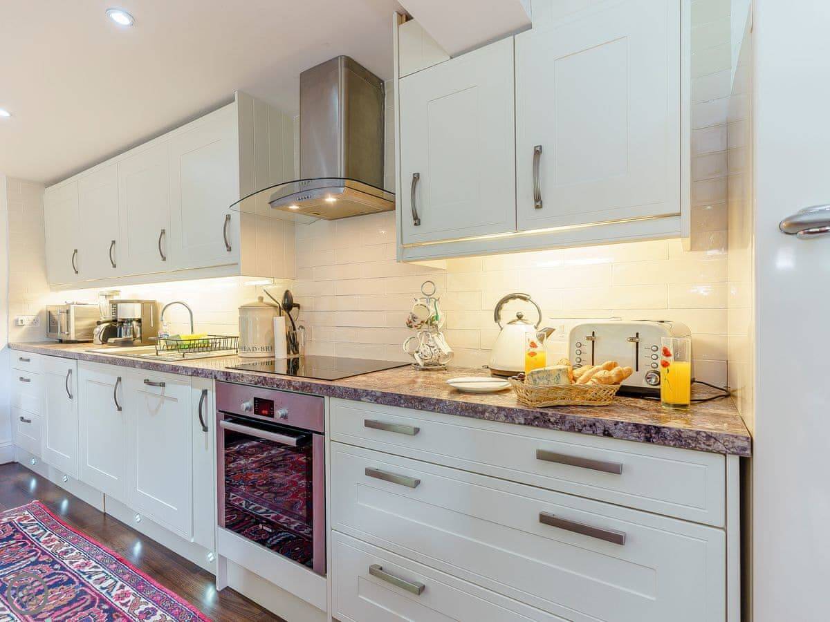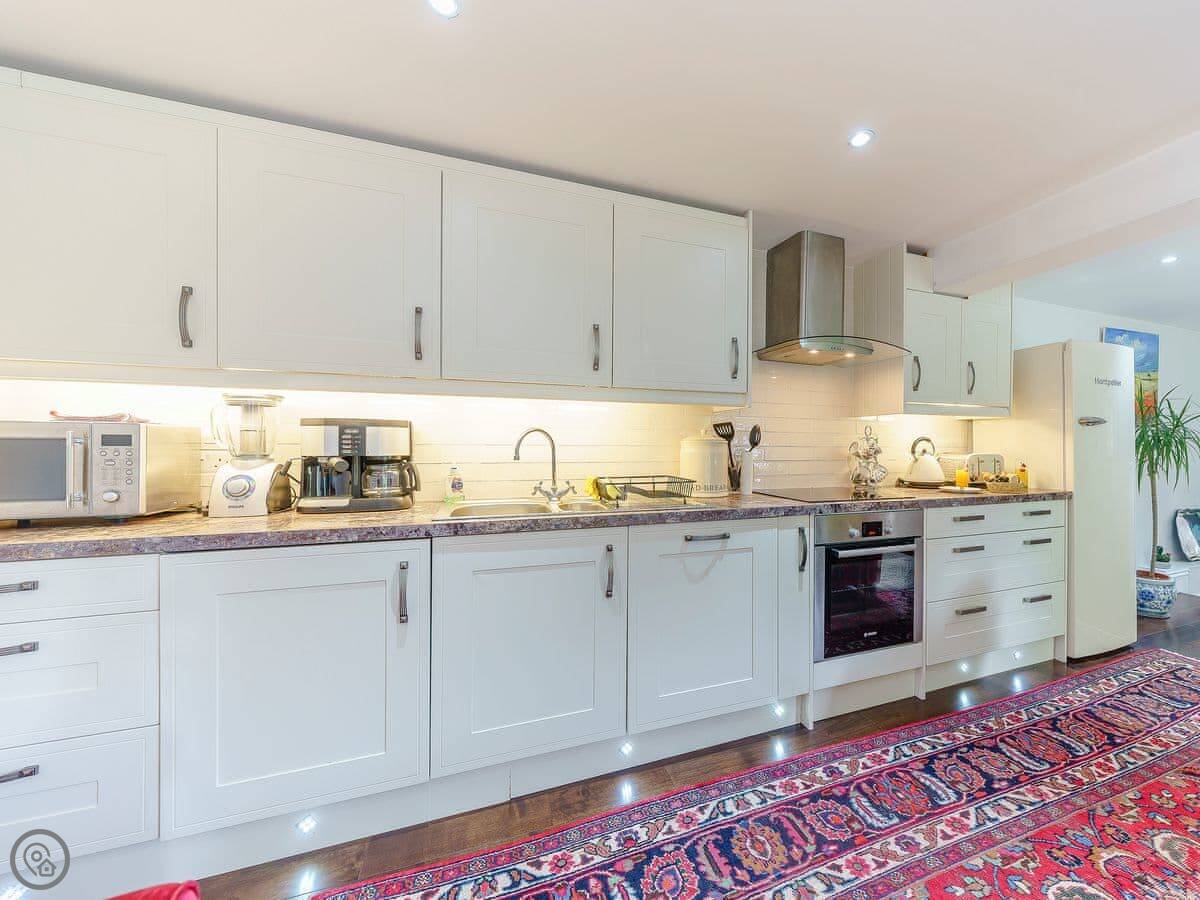 Generously sized, The Stables contains three double bedrooms, two of which are located on the ground floor. Situated on the first floor is an impressive kingsize bedroom with a gallery, containing a seating area. The dining, kitchen and living area is all open plan and you will find features such as framed original paintings and a gold chandelier from the Thai Embassy. The living space downstairs leads out to a pretty, little courtyard area with garden furniture and a barbecue to enjoy, especially in the summer months. There is also a second small garden area in another part of the property, which can be used to dry washing and lock up bikes. Shop, pub and restaurant 1 mile.
