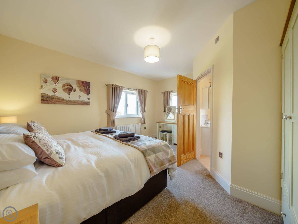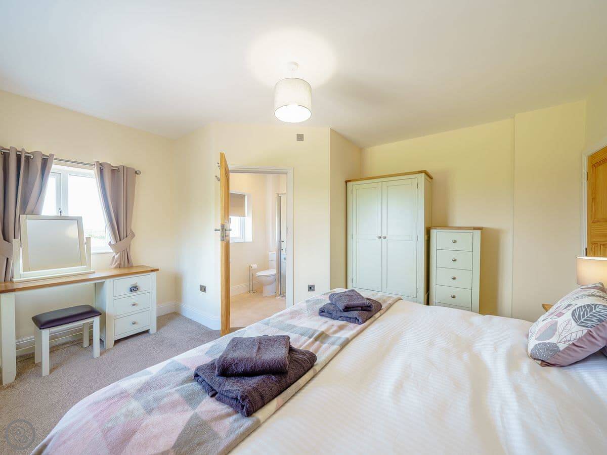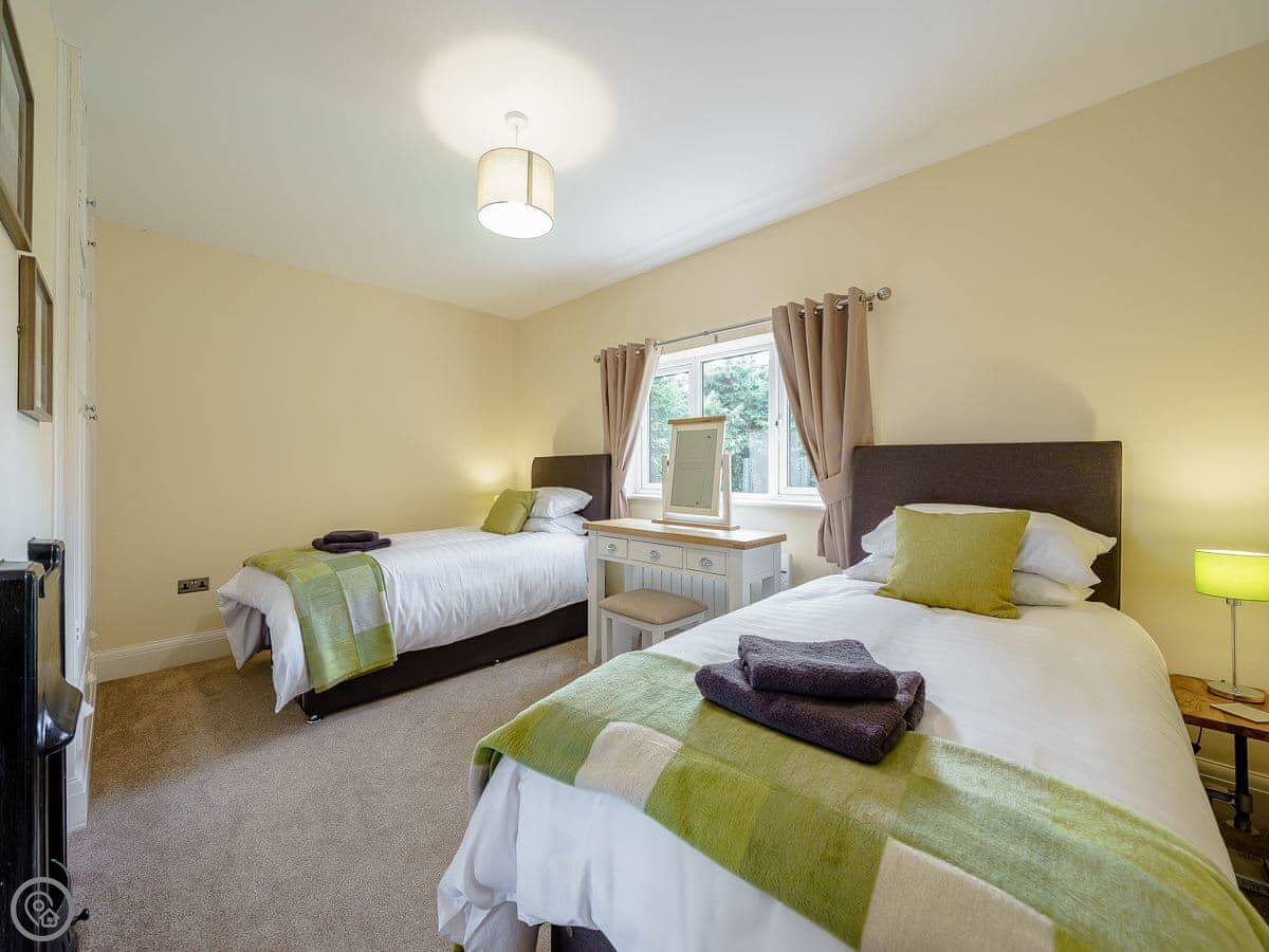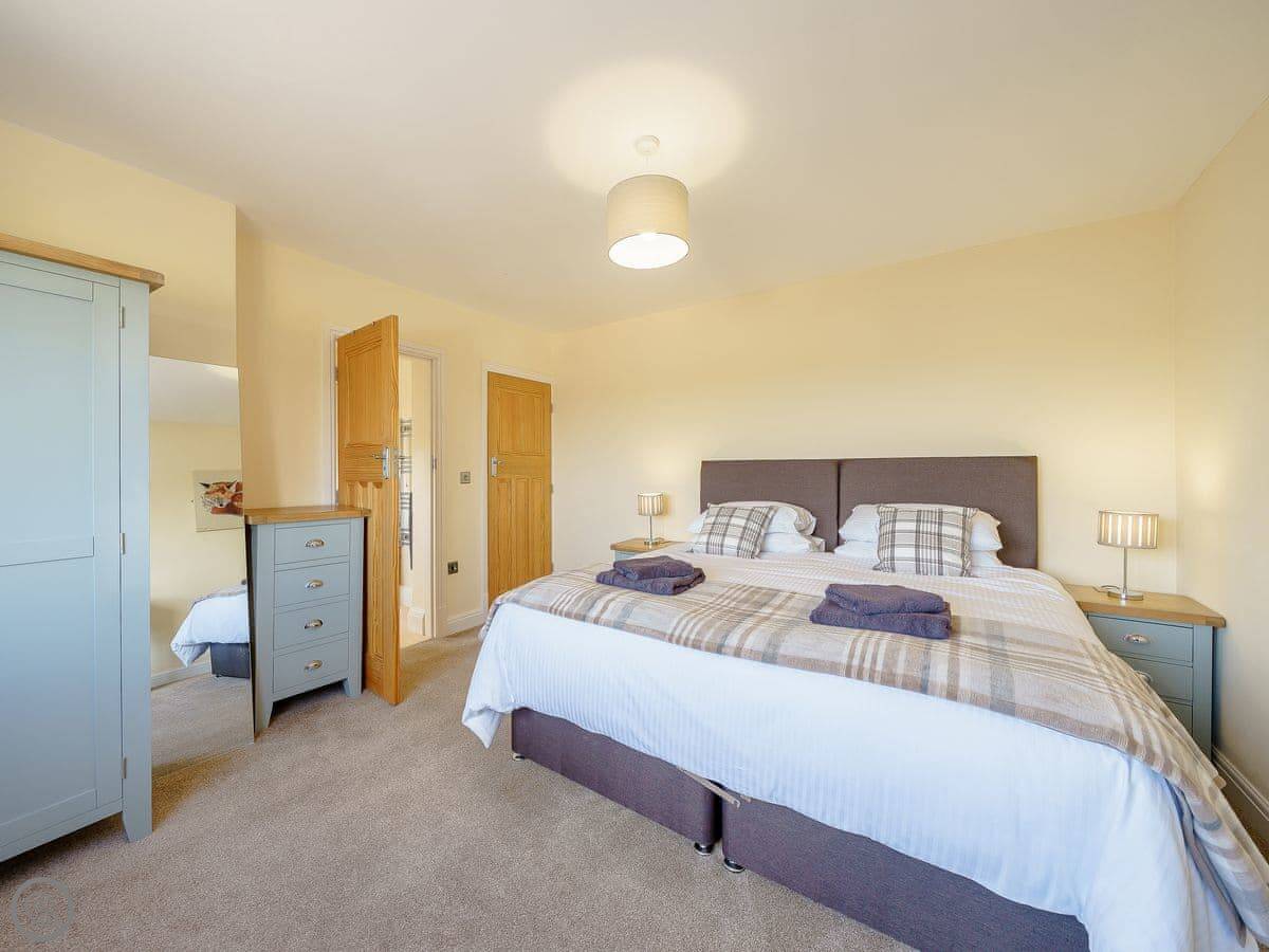 It sleeps ten. Five bedrooms, three bathrooms. It's got a 4 Star rating, which means it's comfortable and well-equipped. Two of the bedrooms are en-suite. Most of the bedrooms can be set up as twins or doubles, just let us know.
